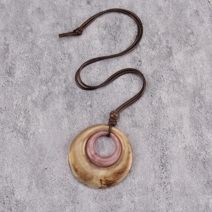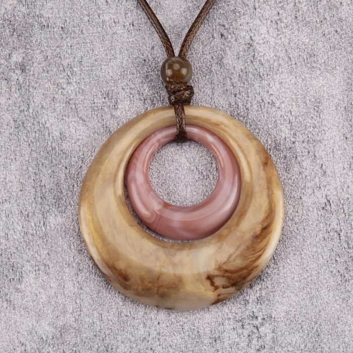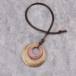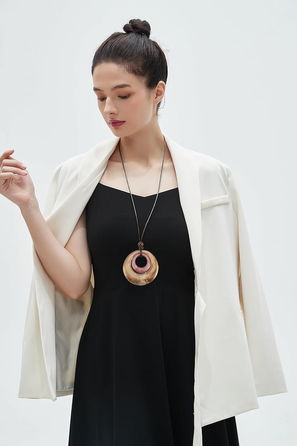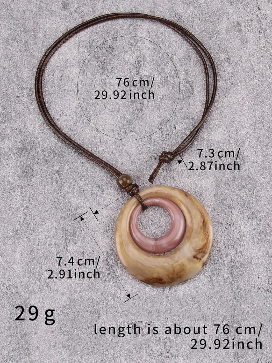 Jeniiahua Long Boho Necklaces for Women Vintage Leather Wooden Pendant Y Choker Ethnic Style Gold Circle Hippie Sweater Necklace