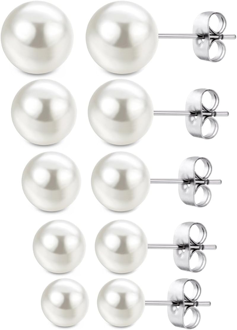 Be the first to review “Jewelrieshop Faux Pearl Stud Earrings 5 Pairs, Stainless Steel Hypoallergenic Starter Set for Women” Cancel reply