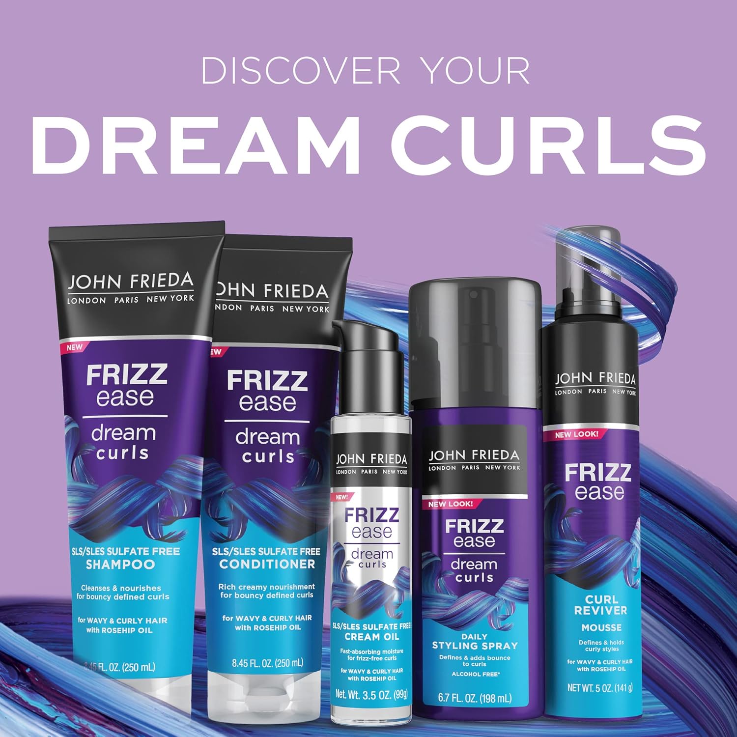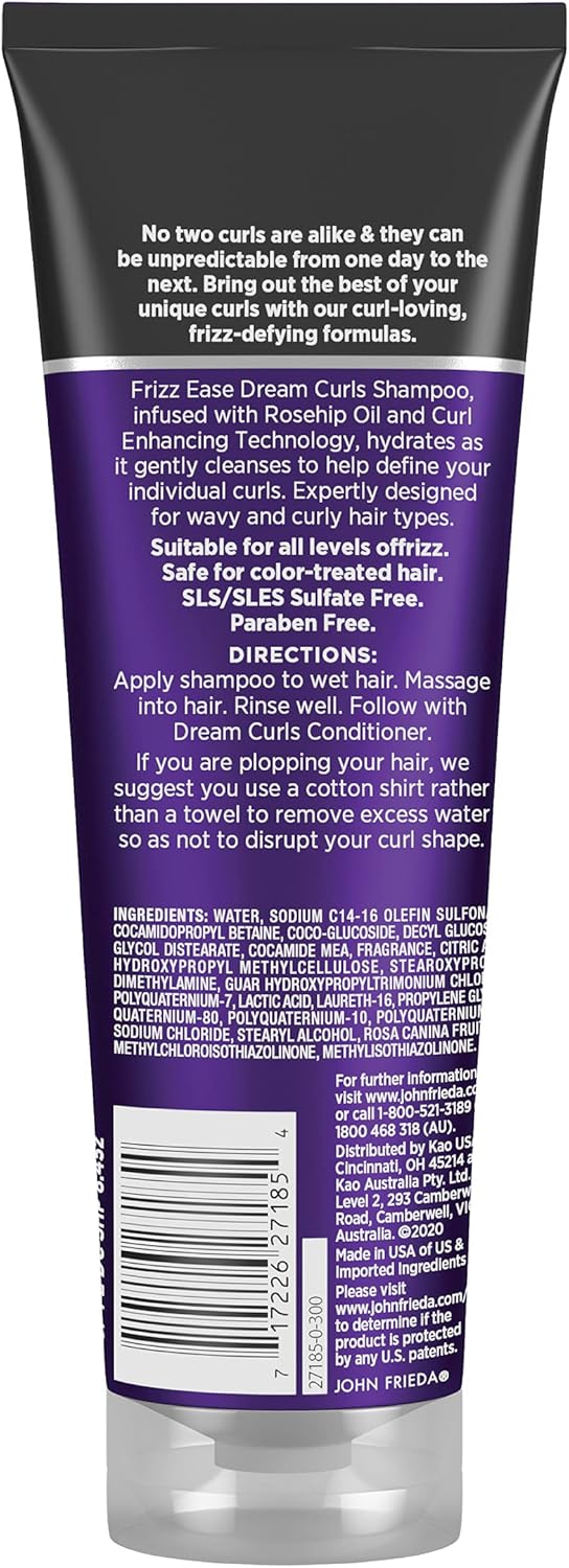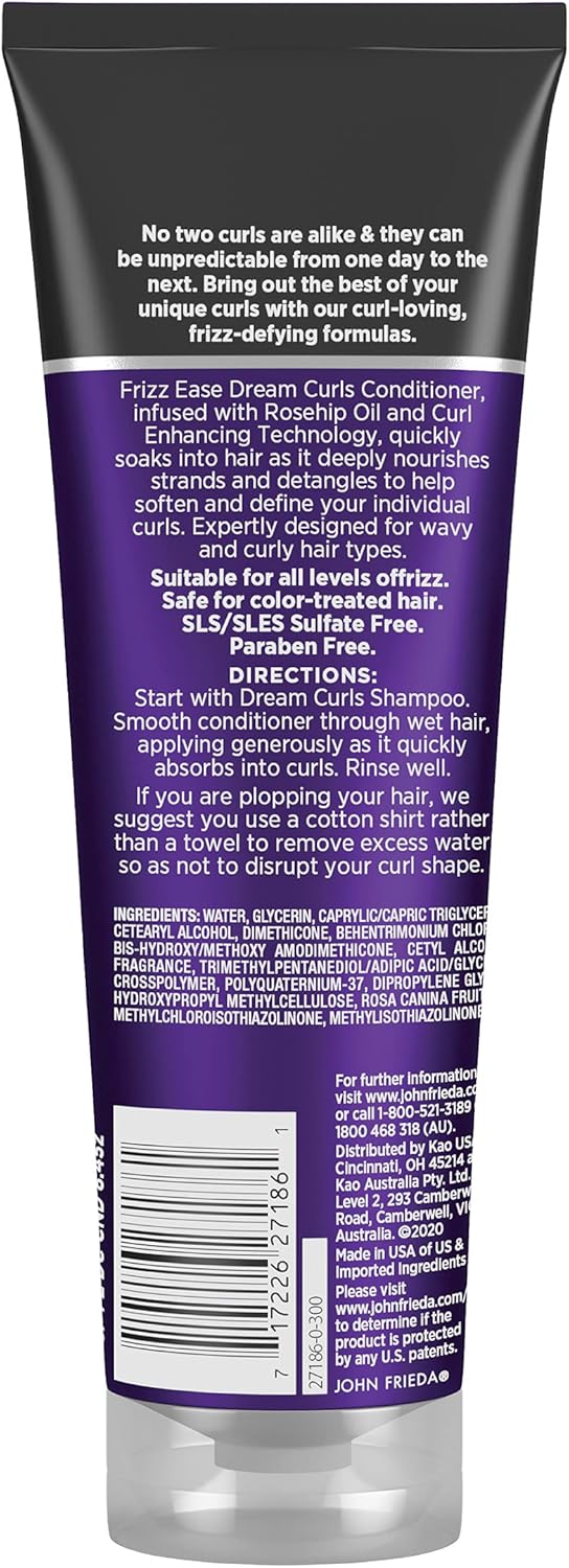 Home Beauty & Personal Care Hair Care John Frieda Dream Curls Hair Care Set, Shampoo and Conditioner, Anti-Frizz, Hydrates and Defines Curly, Wavy Hair, Helps Control Frizz, SLS/SLES Sulfate Free, 3 Piece Set, Rosehip Oil Infused