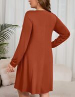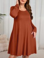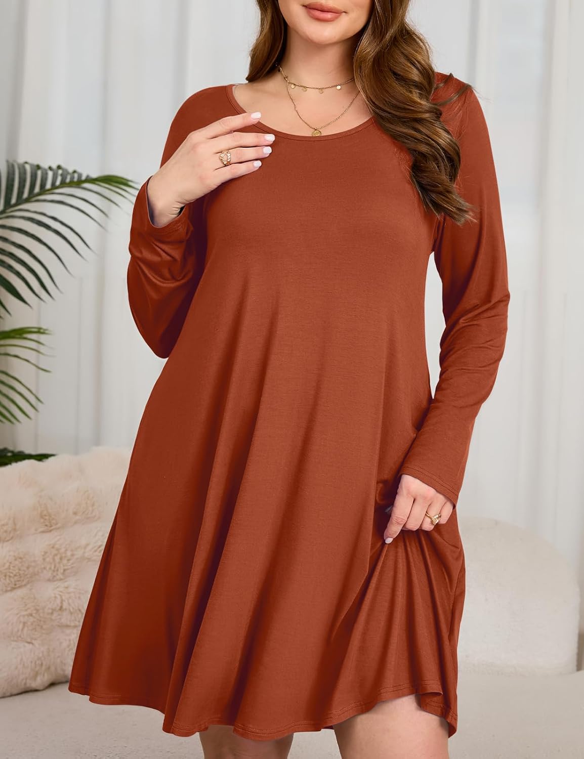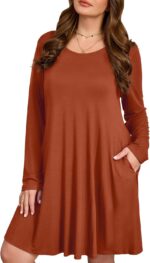 JollieLovin Women’s Autumn Scoop Neck Casual Plain Loose Fit Long Sleeve T-shirt Swing Tunic Dress with Pockets