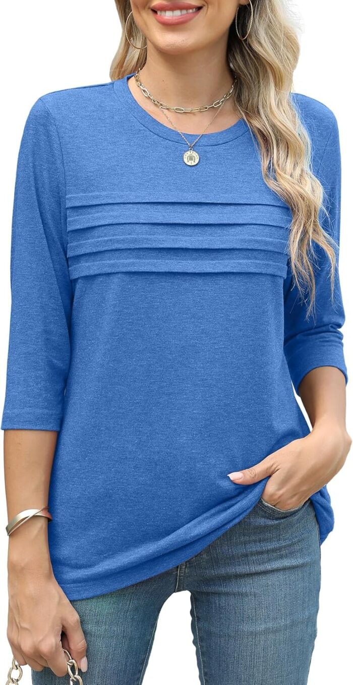 Be the first to review “JomeDesign 3/4 Length Sleeve Womens Tops Round Neck Casual Tunic Tops Pleated Shirts Dressy” Cancel reply