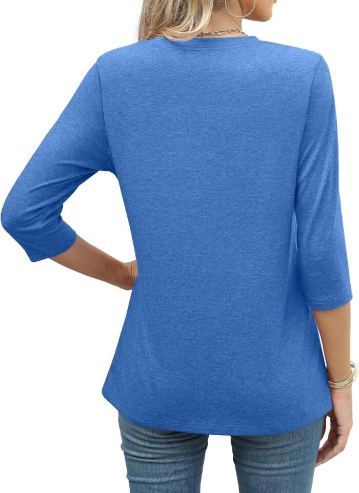 Womens 3/4 Sleeve Length Tops Loose Casual Tunic Shirts