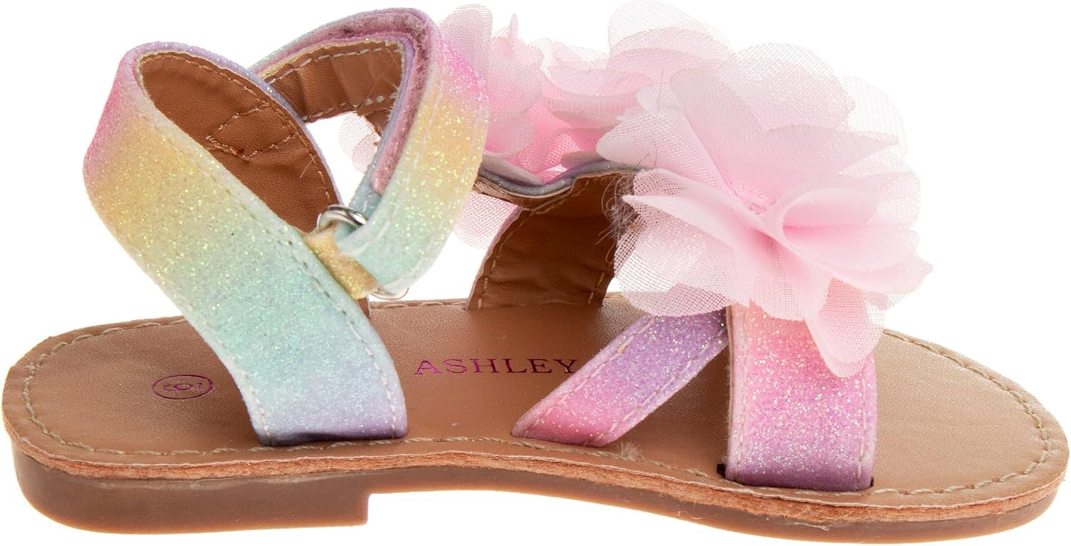 PANDANINJIA Gina Girls Sandals Open Toe Summer Flats Dress Sandals Shoes Toddler/Little Kid/Big Kid