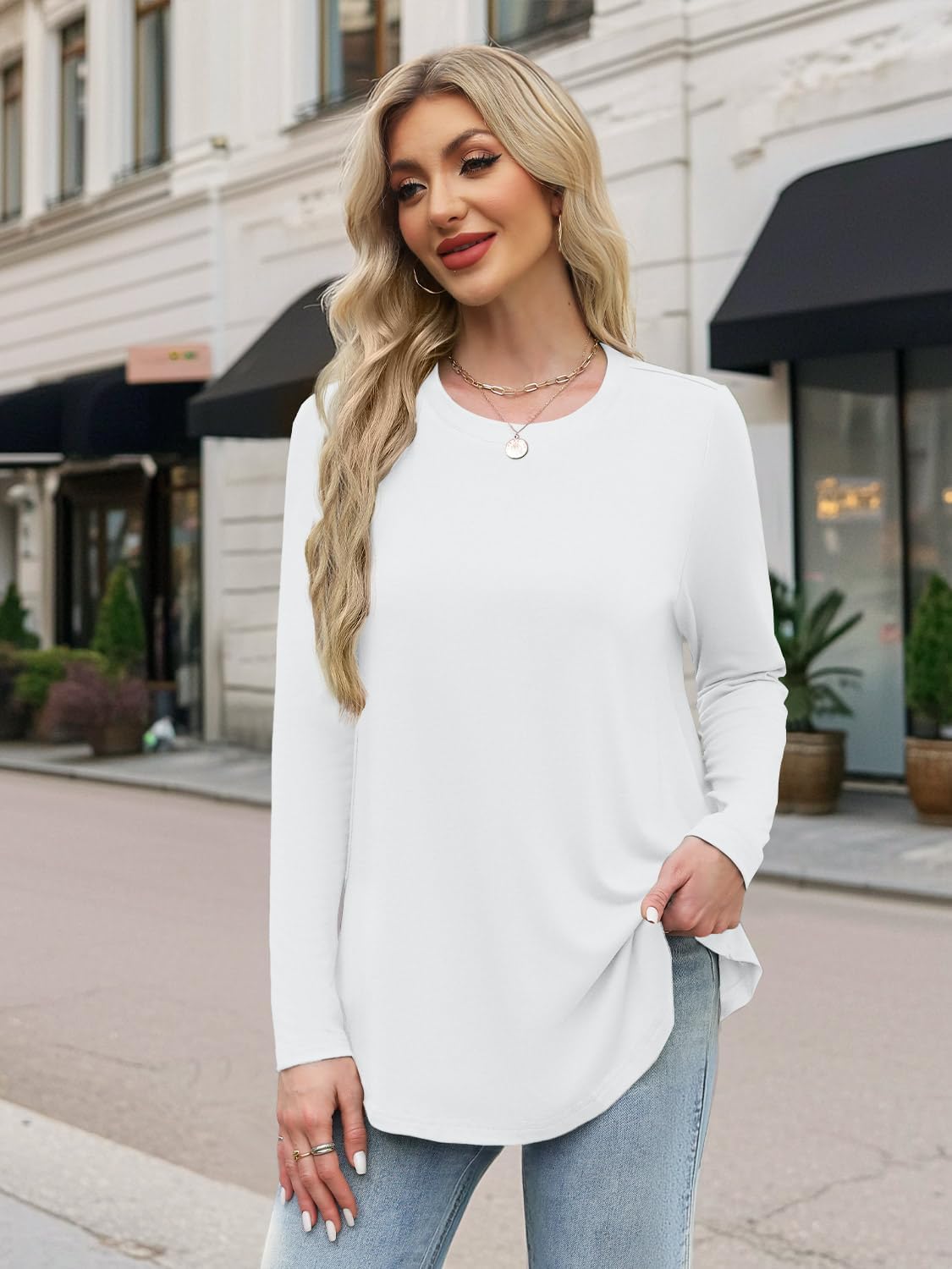 Match: Long sleeve t-shirt for women, fashionable tunic shirts for women effortlessly pairs with leggings, jeans, or joggers through fall and winter, layer it under jackets for an instant chic upgrade.