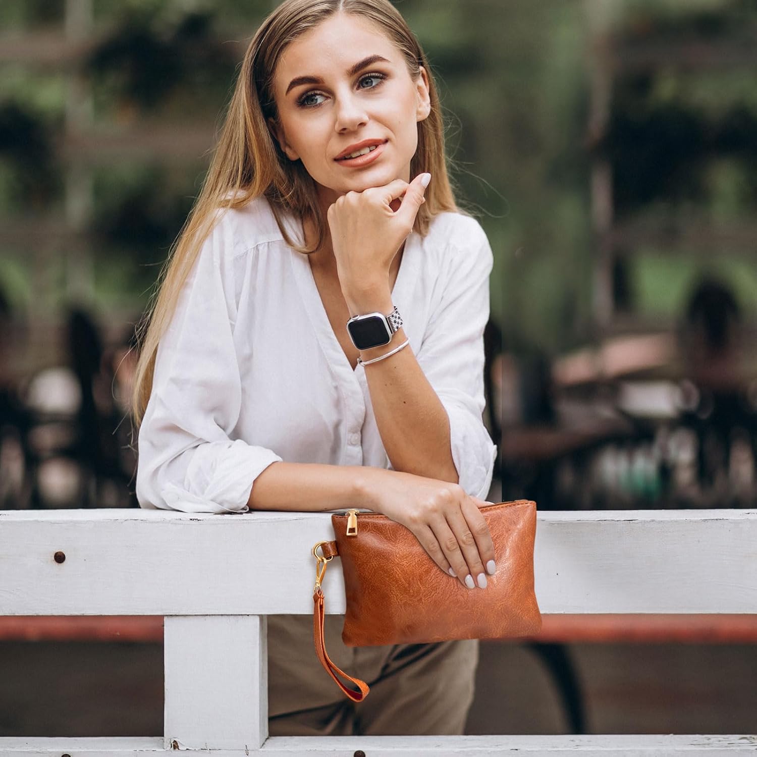 Wristlet Clutch Purses for Women Leather Wallet Purses Brown Small Purse Wristlet Wallet for Women Ladies Gifts