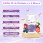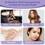 20-IN-1 Multivitamin & Mineral:Each tablet contains 20 nutrients such as biotin, keratin and collagento keep your hair shinier, thicker and stronger, strengthen your nails and joints, give your skin elasticity, and make it easy to enhance your beauty to maintain a youthful appearance!