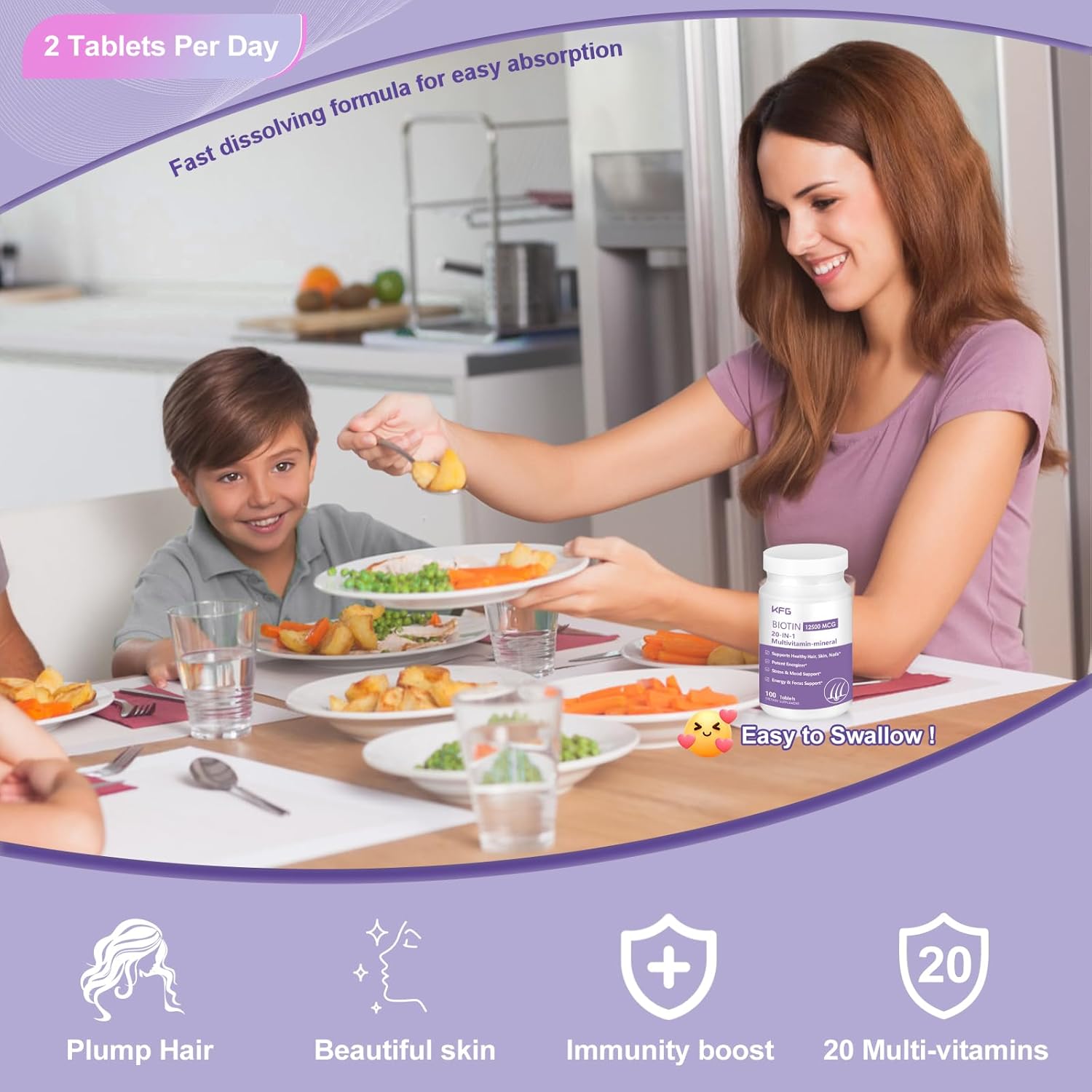 KFG Biotin, Multivitamin-Mineral, Vitamin Supplement with Biotin, Niacinamide Folic Acid & multivitamin, Supports Hair, Skin, and Nail Health for Women, 100 Tablets.