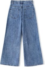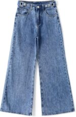 EXARUS Girls Jeans Pants Wide Leg/Flare/Skinny Denim Pant Ripped High Waist Elastic Band Casual with Pockets Kids 6-14Y