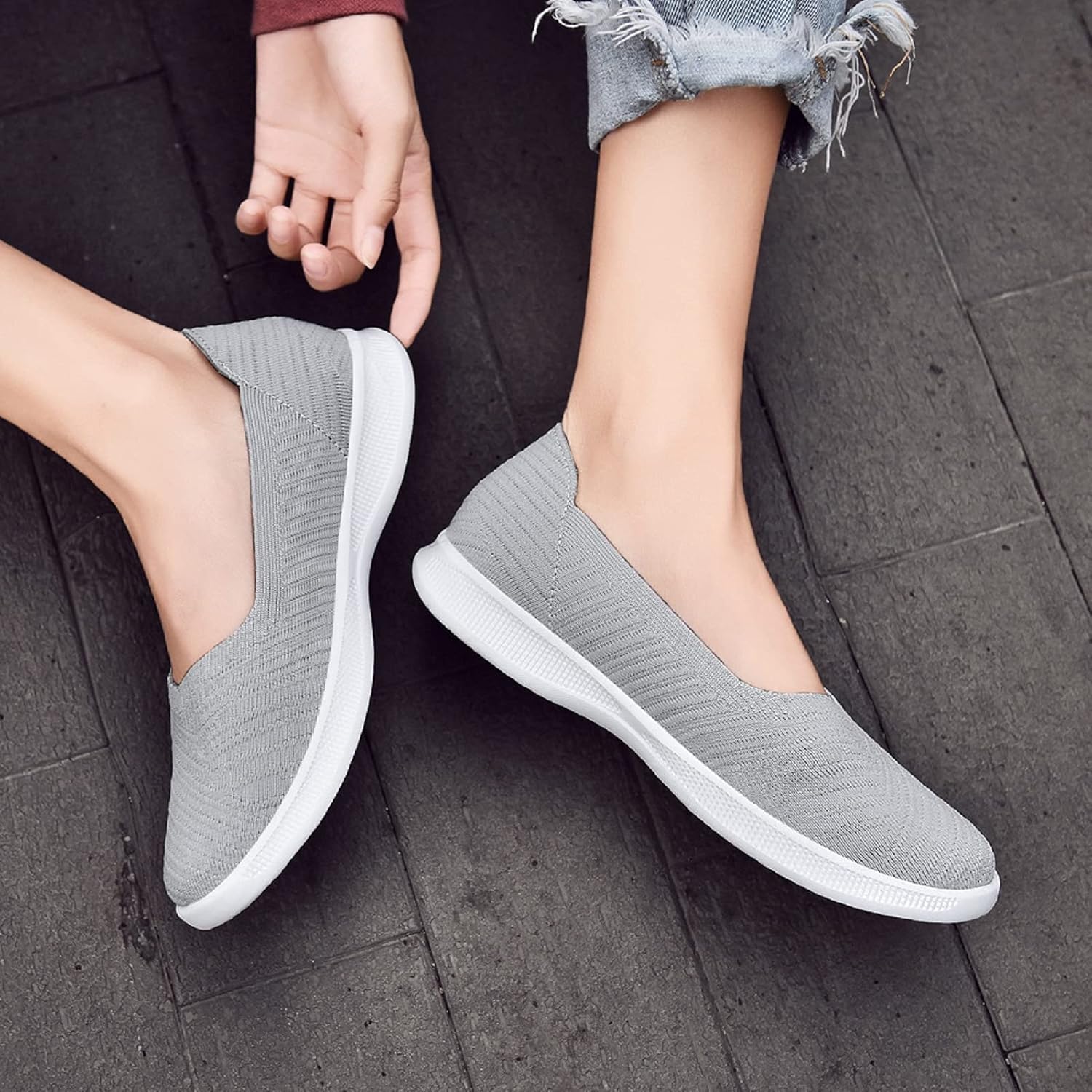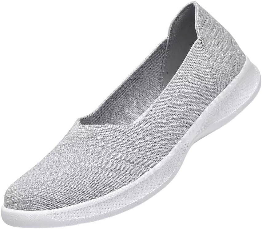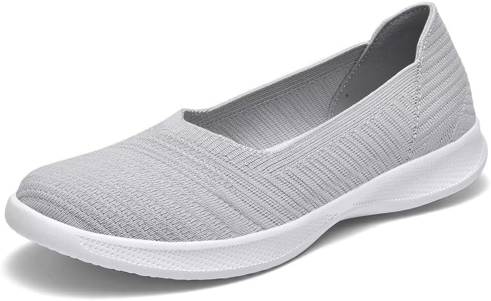 konhill Women’s Slip on Loafers – Comfy Walking Tennis Low-Top Ballet Flat Nurse Shoes Casual Sneakers, Light Gray, 5.5