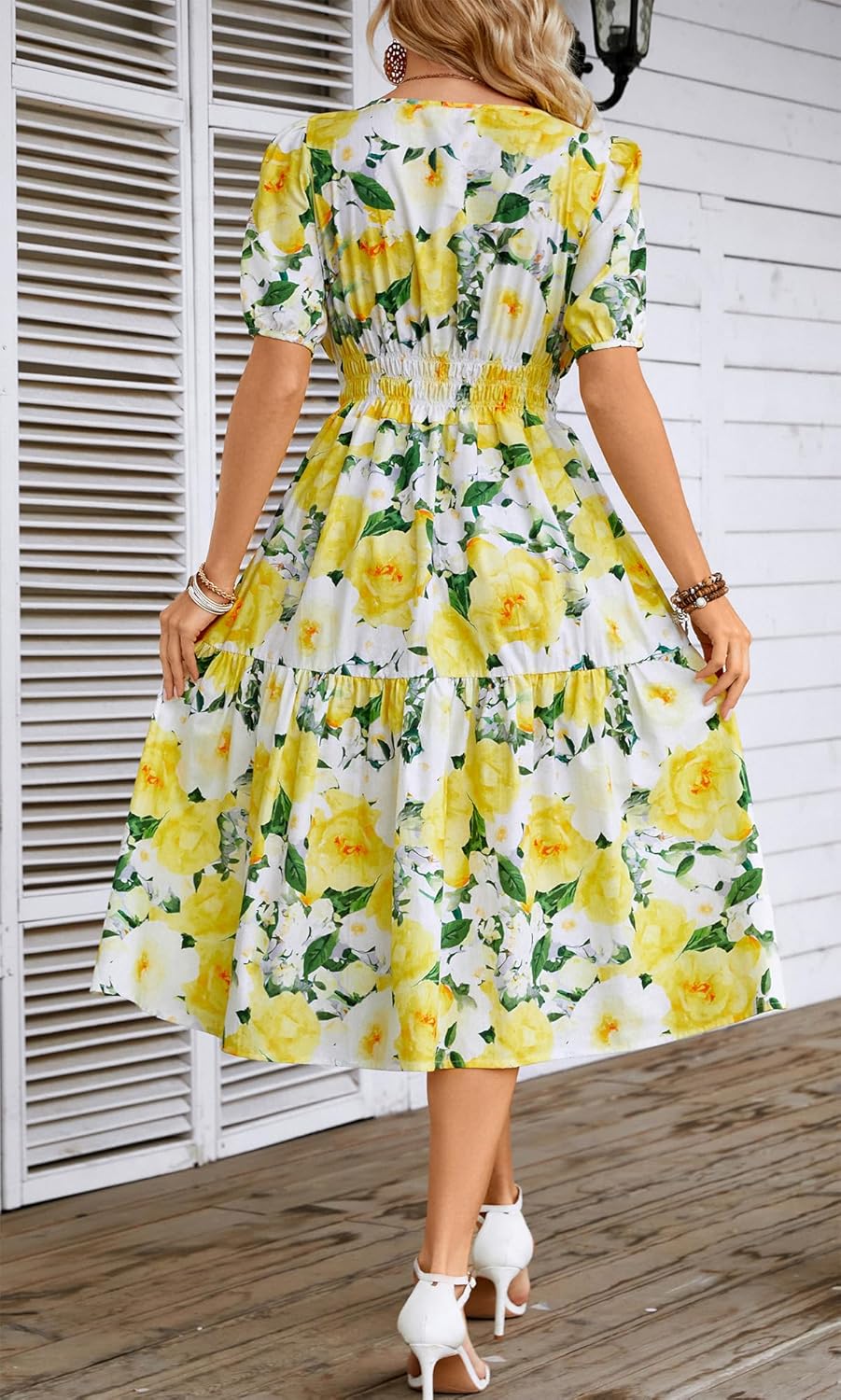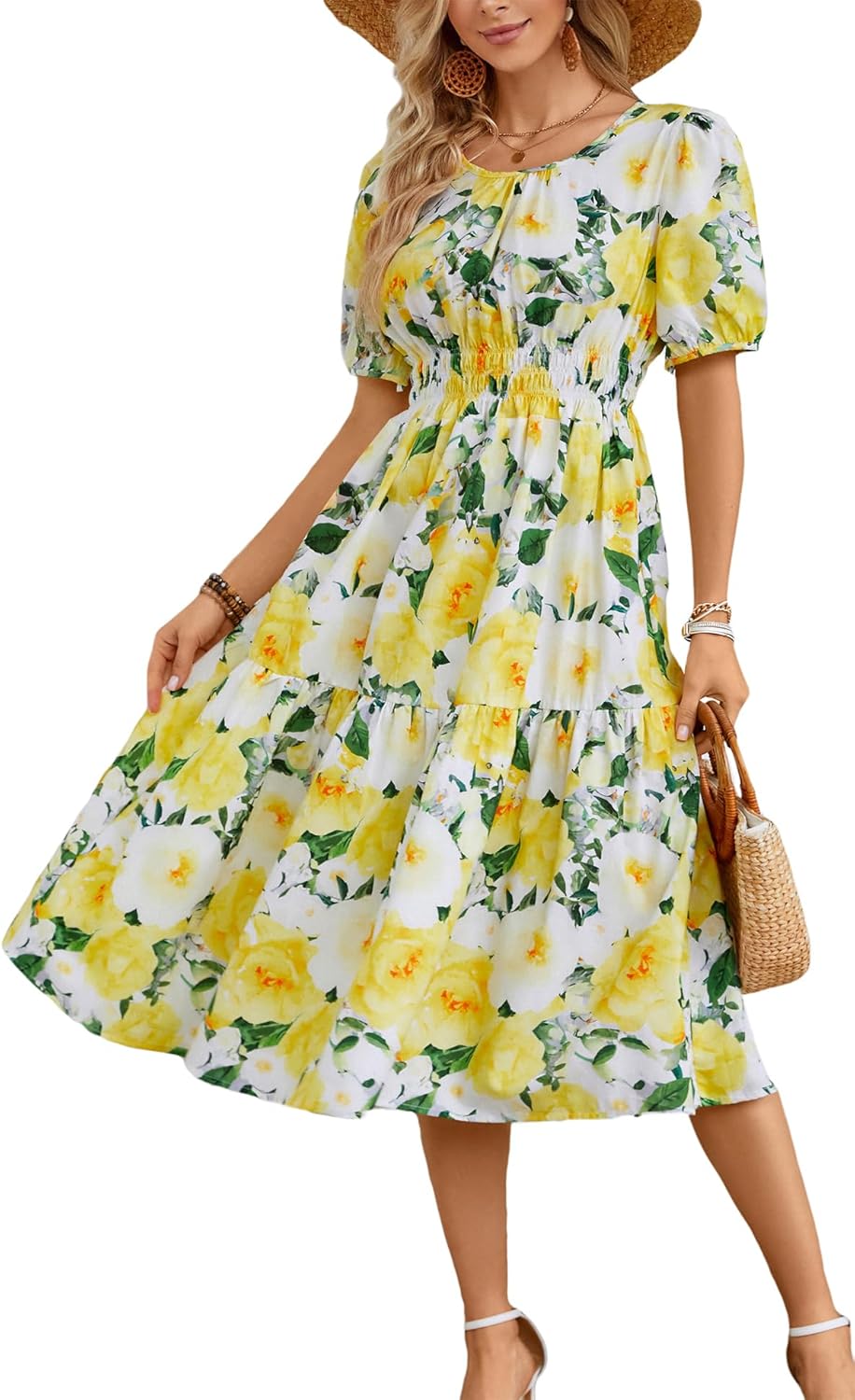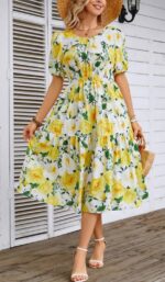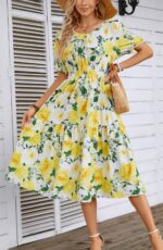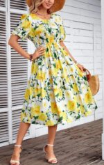 Be the first to review “Kormei Women Summer Casual Boho Floral Round Neck Short Sleeve Smocked Waist Tiered Flowy Swing Midi Dress” Cancel reply
