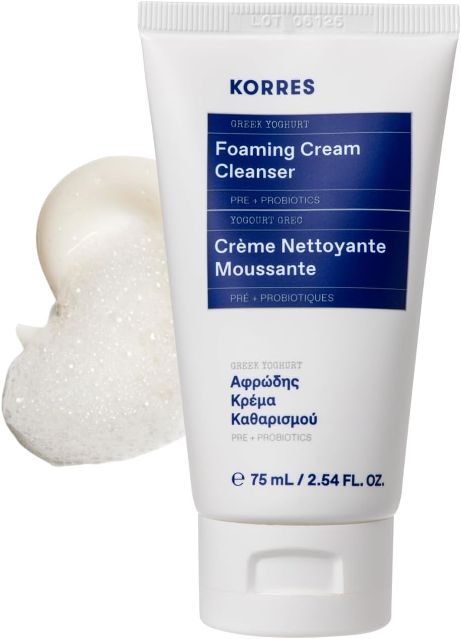 KORRES Greek Yoghurt Foaming Cream Cleanser, Hydrating, Deep Cleansing Skin Care, Makeup Remover, Face Wash for Women, Cream to Foam Facial Cleanser for Dry, Oily, Sensitive, Any Skin Type, 2.5 fl oz