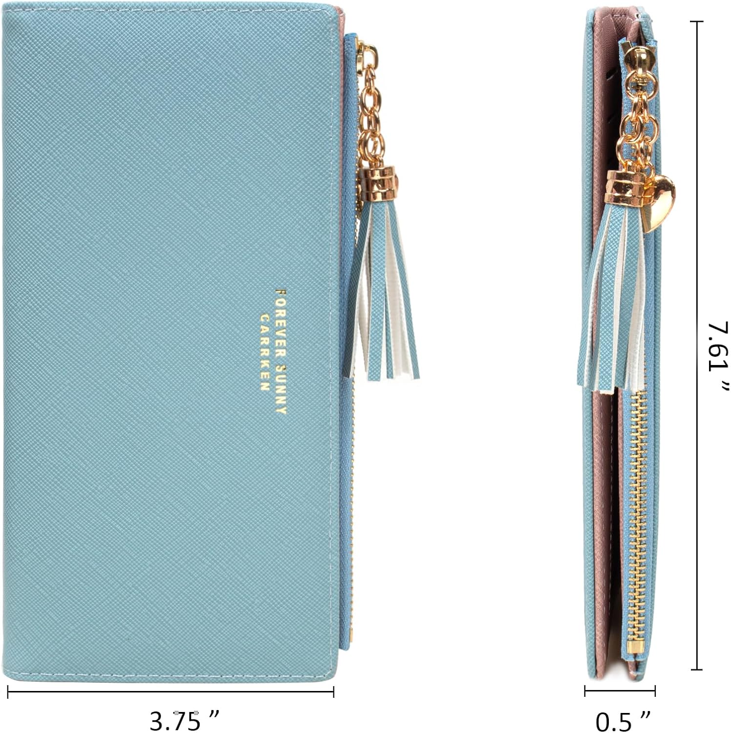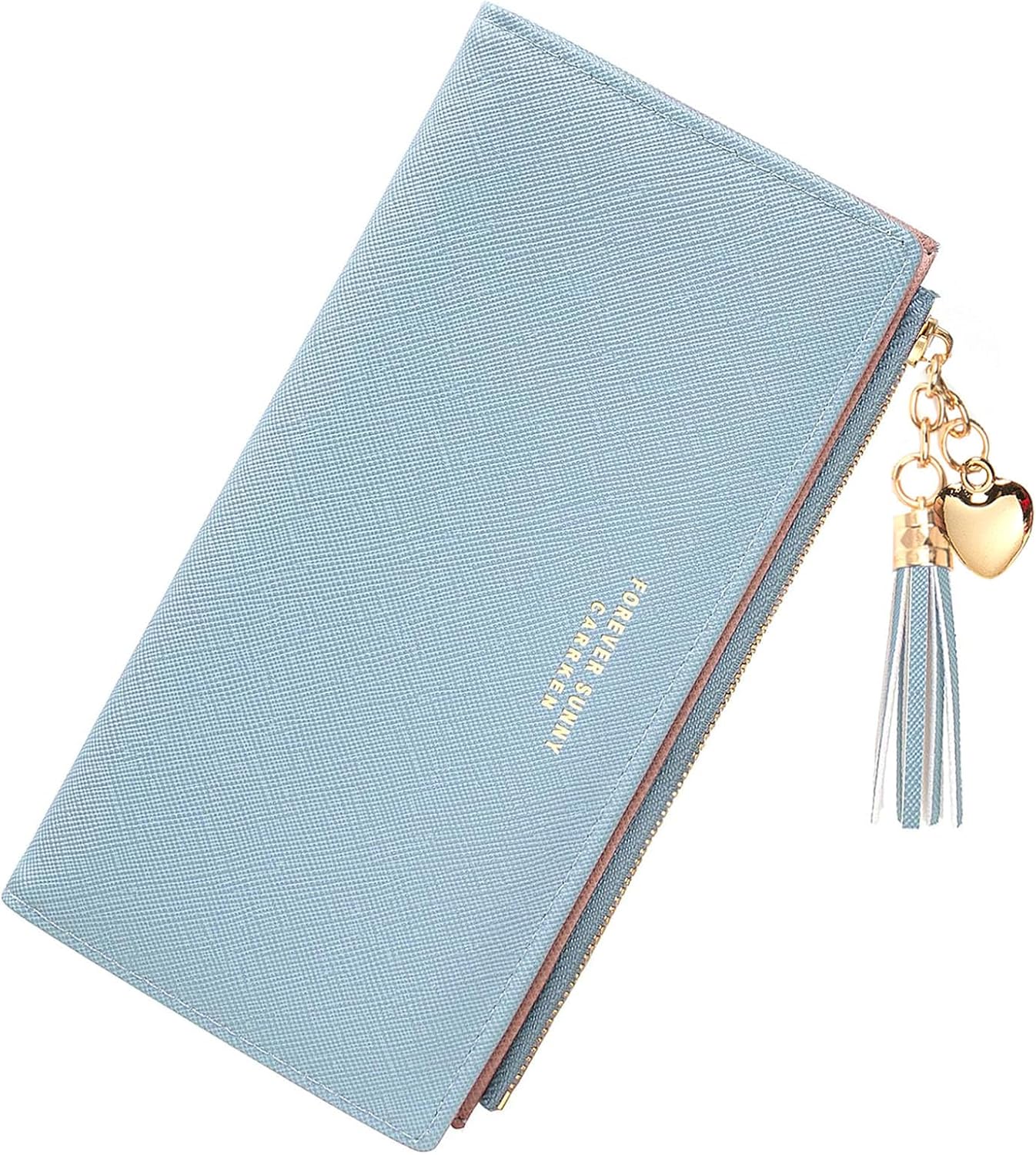 Home Bags & Accessories Wallets KOTORA Womens Slim Wallet Girls Thin Wallets Pretty Mini Long Card Holder Small Tiny Clutch Zip Purse Love Pendant Tassels Billfold, Blue, Minimalist