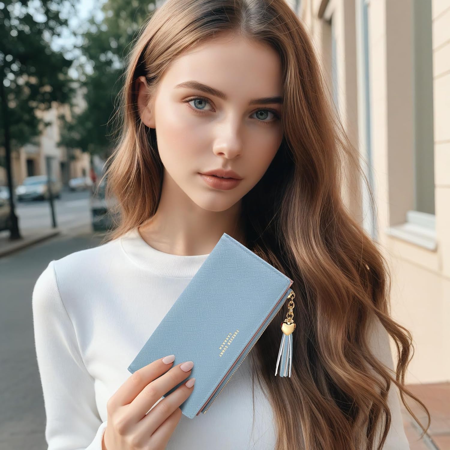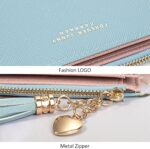 KOTORA Womens Slim Wallet Girls Thin Wallets Pretty Mini Long Card Holder Small Tiny Clutch Zip Purse Love Pendant Tassels Billfold, Blue, Minimalist