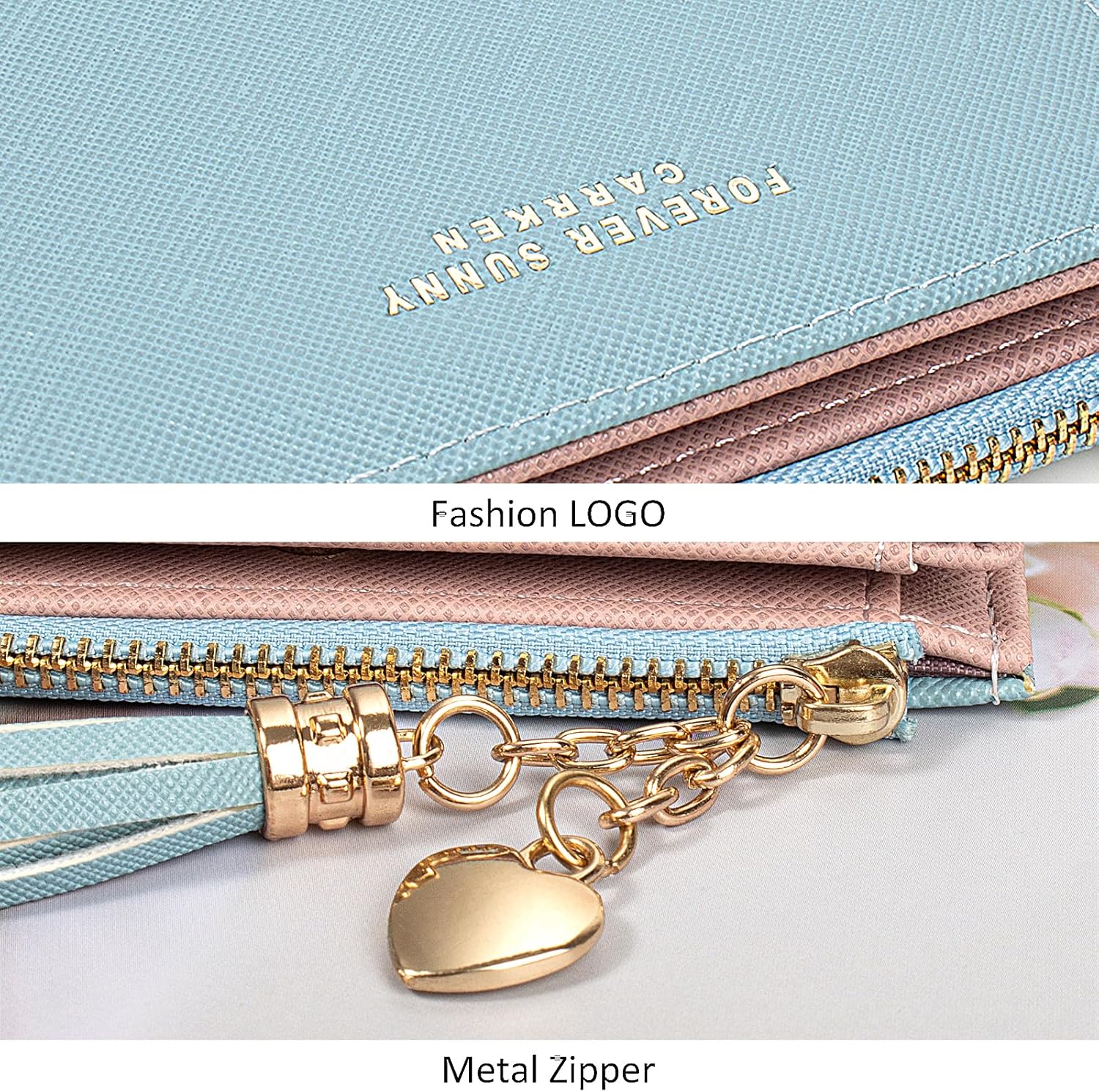 Womens Wallet,Wristlet Wallets for Women with RFID Blocking with Metal Zipper,Coin Pocket,Card Clutch Purse for Travel