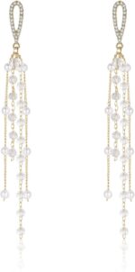 Imagine a garden filled with beauty and wonder: this golden earrings encapsulate the feel of a dreamy gardenscape, complete with a waterfall of pearls, flying in the winds. Wear it as part of a floral styling.