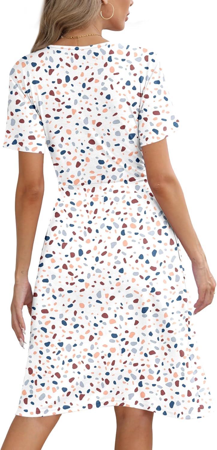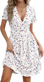 KUOTAI Women’s Summer Short Sleeve Casual Dresses Wrap V Neck Beach Outfits Party Flowy Dress with Pockets