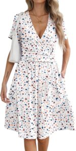 Mokayee Womens Summer Short Sleeve V Neck Fit and Flare A Line Business Casual Wedding Guest Work Dresses with Pockets