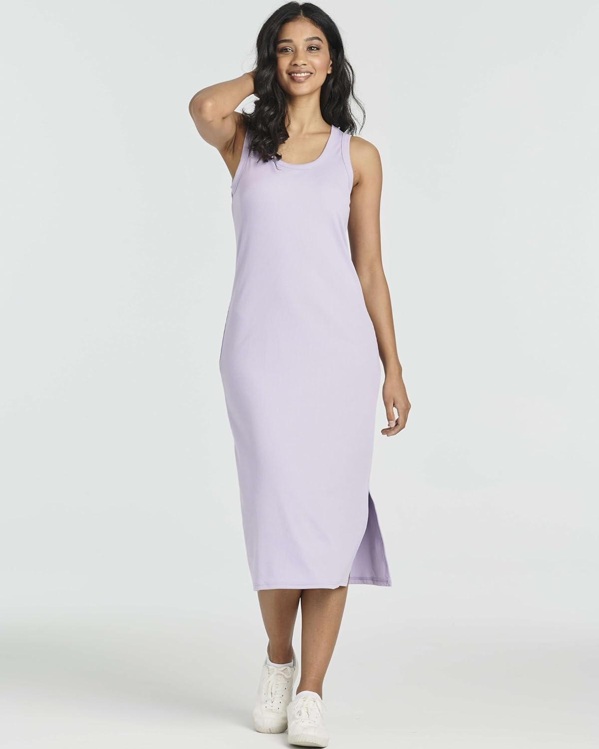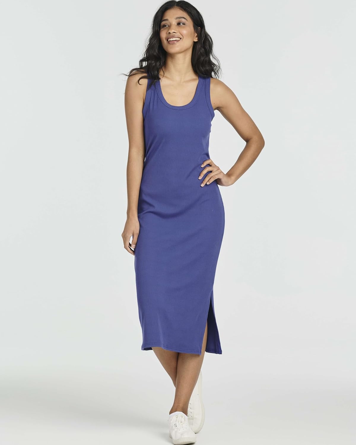 Ladies Ribbed Midi Tank Shift Dress with Slit