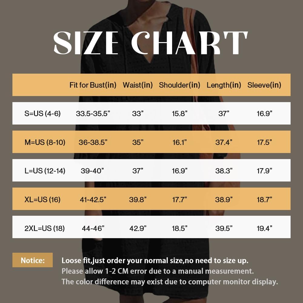 Be the first to review “Lafural Womens V Neck Cotton Casual Loose Shift Tunic Smock Summer Dresses Vacation Dress 3/4 Sleeve Pocket” Cancel reply