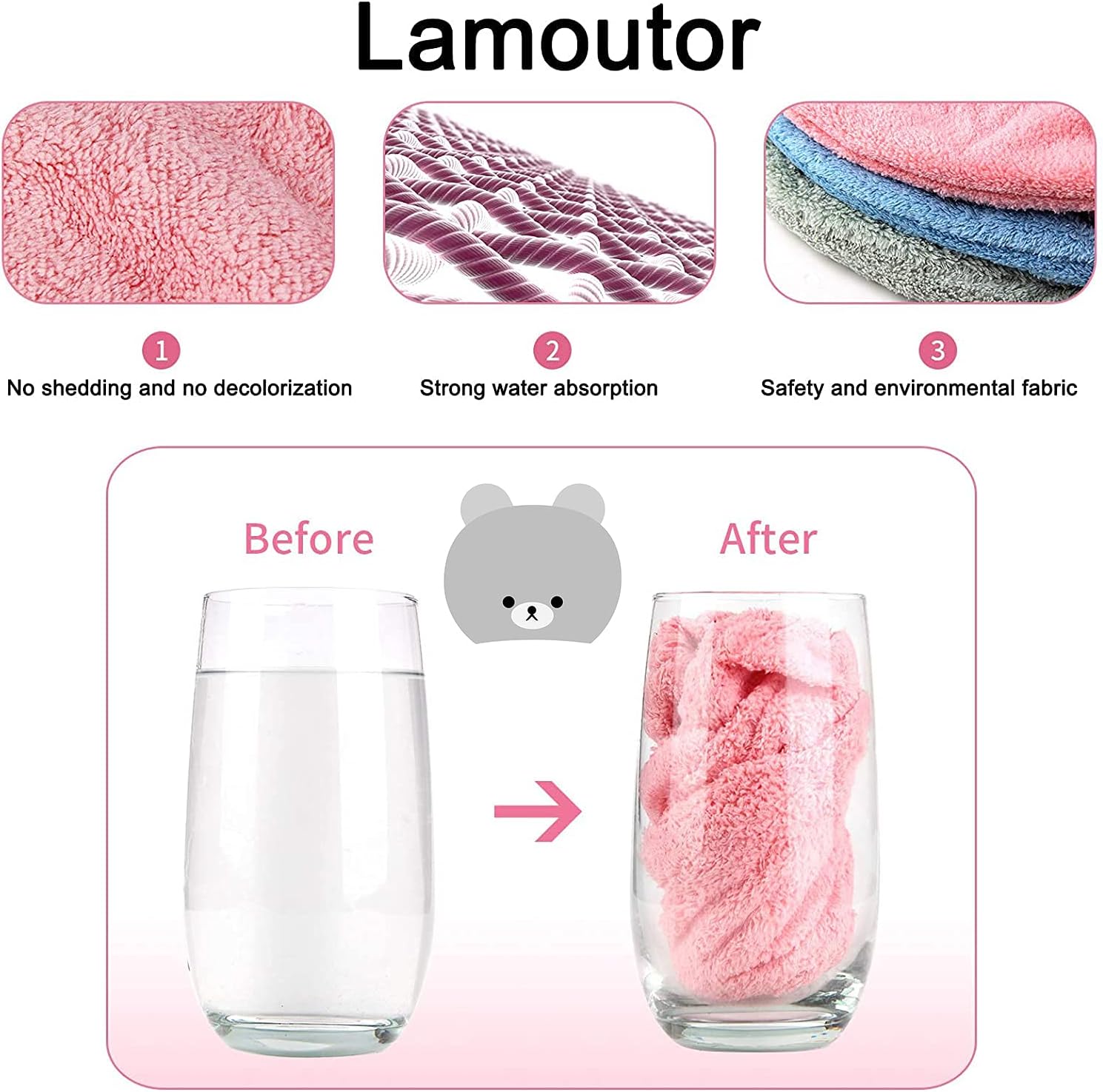 Kids hair drying towel made of high quality coral fleece, extremely soft and absorbent. Machine washable and hand washable.