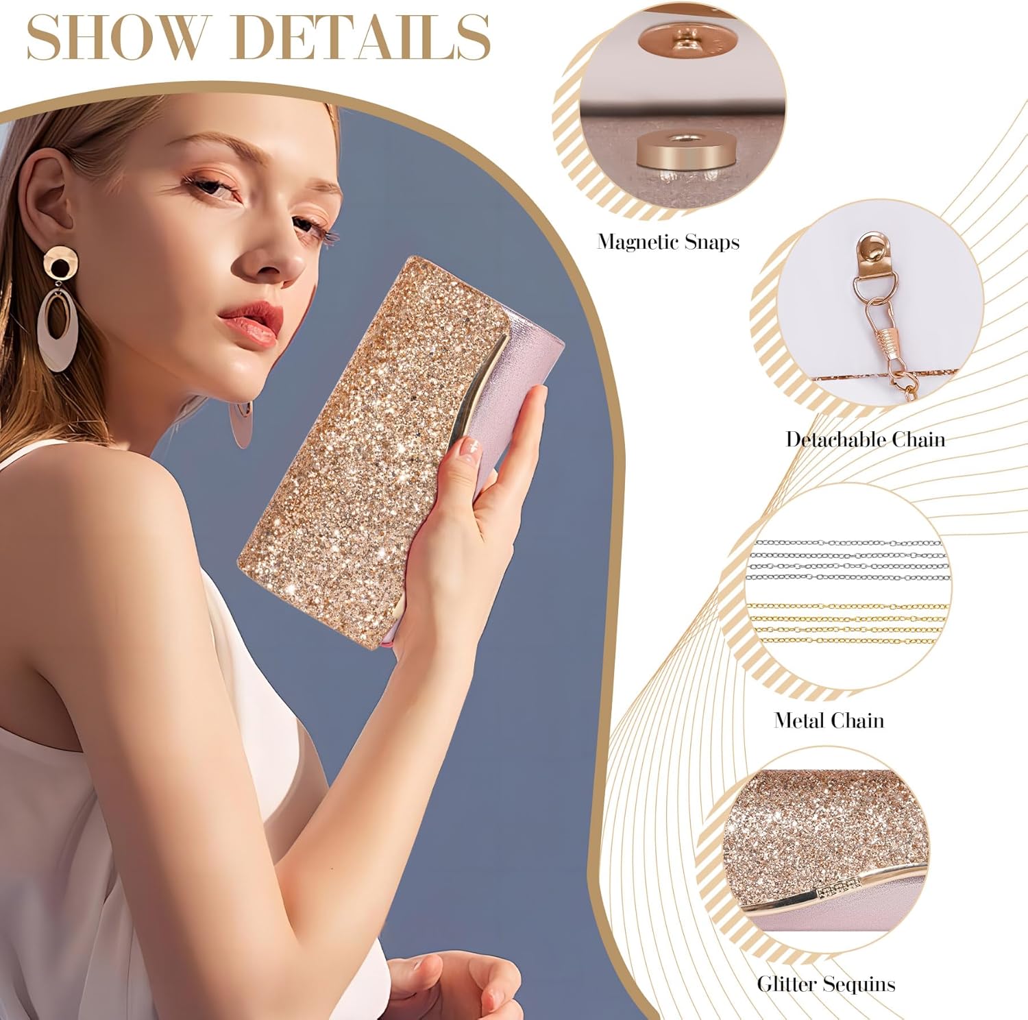 Be the first to review “Larcenciel Women’s Evening Handbags rose gold, Champagne” Cancel reply