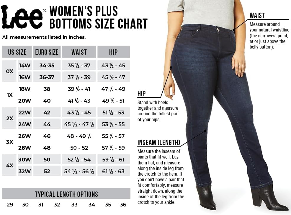 LEE Women’s Regular Fit Straight Leg Jean. These straight leg jeans feature regular fit with a mid rise and a skimming cut through the seat and thigh. This comfortable, durable denim stands the test of time with classic washes and an everyday cut made for work or the weekend. Measurements: leg opening: Missy 15-inches, inseam: Missy 30-inches. BRAND HERITAGE: Just like our founder, H.D. Lee, our passion is helping can-do people do more. We are committed to designing clothing that conforms to your body, allowing you to move through life freely. We help you chase the things that bring you joy and laughter. The things that make you fearless and hopefully because your passion is what makes you unique. And what moves you, moves us. Move your Lee.