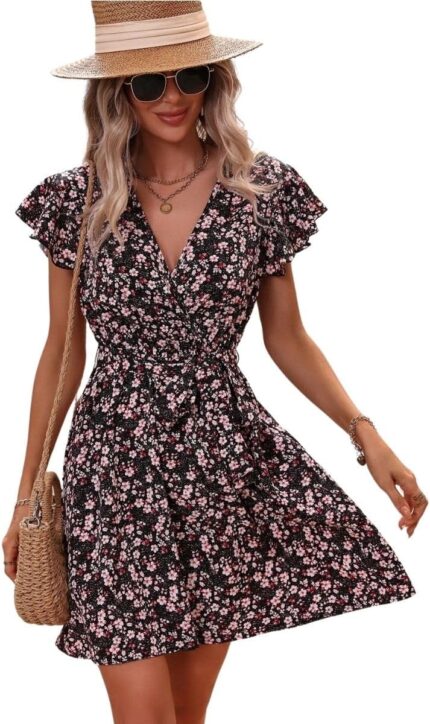 Price: (as of – Details) PRETTYGARDEN Women’s Floral Summer Dress Short Sleeve Stretchy Waist Part Deep V-Neck Boho Beach Dresses