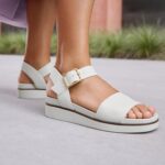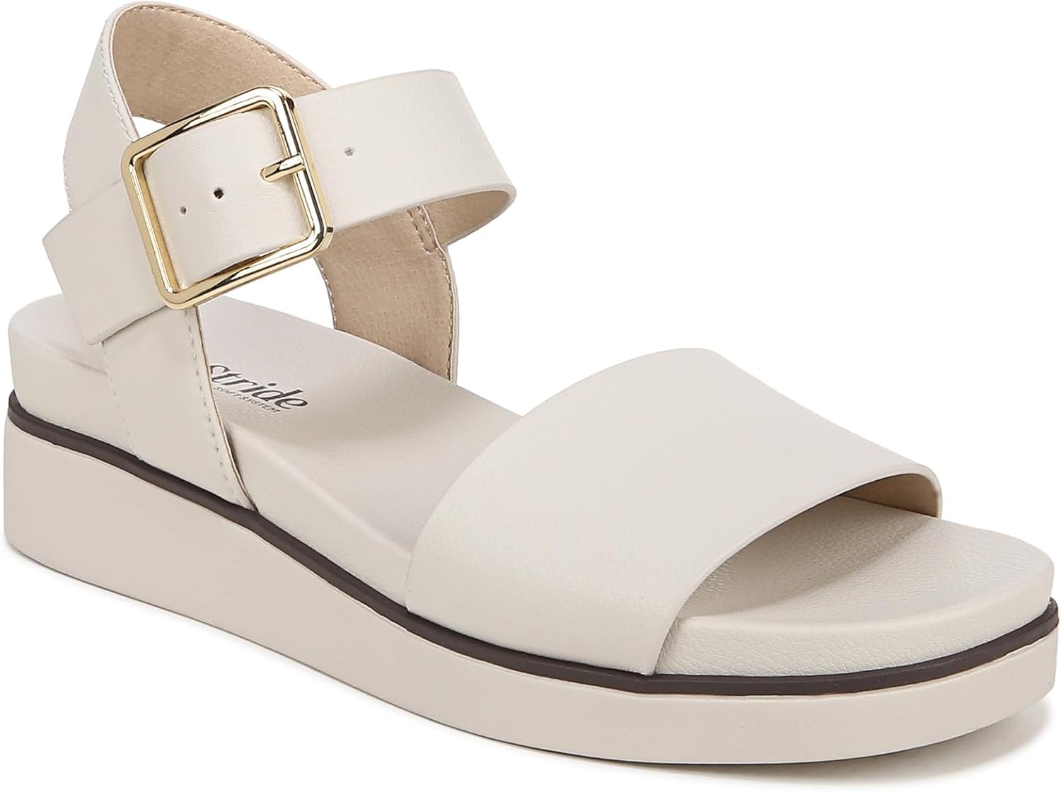 Elevate every look in these sleek and modern platform sandals. Perfect for dressing up or down. Faux leather straps with an open square toe, instep strap with adjustable buckle closure, and lightweight and flexible design. Soft System® comfort package provides all-day support, flex, and cushioning. Traction sole for extra stability. Just Right Height 1 1/8 inch platform sole.