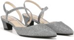 The seasonless staple. Top off any look with this gorgeous, perfectly pointed heel. Faux leather or fabric upper with a pointed toe, slip-on fit, and crisscross strap. Toe box, insole board, and linings partially crafted with recycled materials. Soft System® comfort package provides all-day support, flex, and cushioning. Traction sole provides you with extra stability. Just Right Height 1 and 1/2 inch heel.