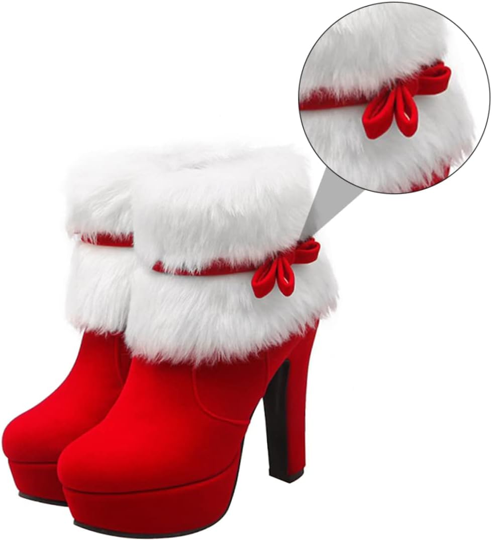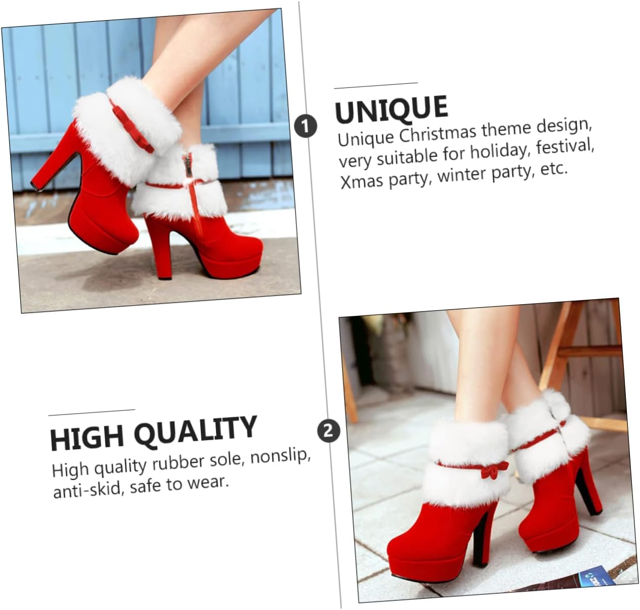 🌹 Festive and charming – Womens ankle boots in Christmas style can easily match with your Christmas dresses and clothes to make you look more amazing and charming.