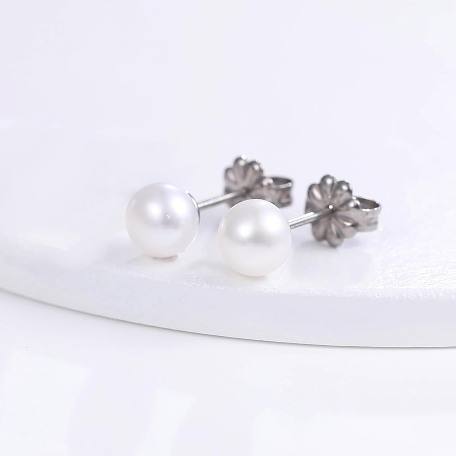 Home Jewelry & Fashion Accessories Earrings Limerencia Hypoallergenic F136 Pure Ttitanium Handpicked White Freshwater Cultured Pearl Earrings G23 Implant Grade Piercing Studs