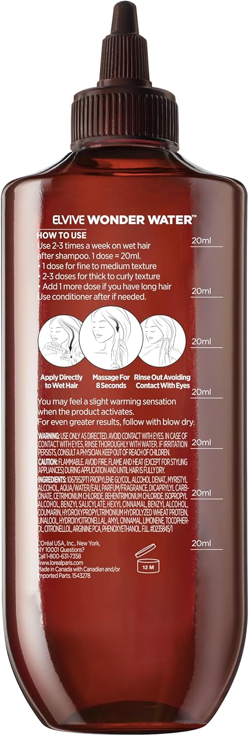 Silicone-free and paraben-free Elvive 8 Second Wonder Water, Moisturizing agents and amino acid target damaged areas of hair, forming thin layers called lamellas to smooth hair’s surface with no weigh-down