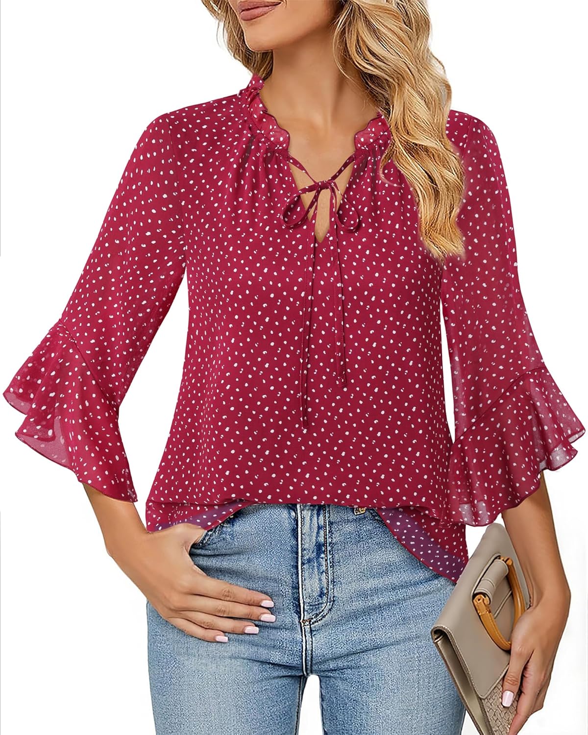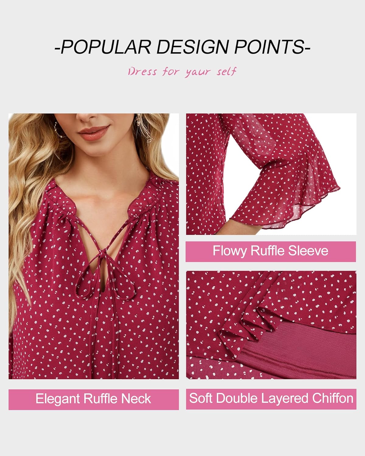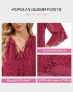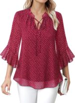 Lotusmile Women’s Dressy Casual or Work Business Blouses Trendy Ruffle Neck Shirts 3/4 Sleeve Chiffon Tops