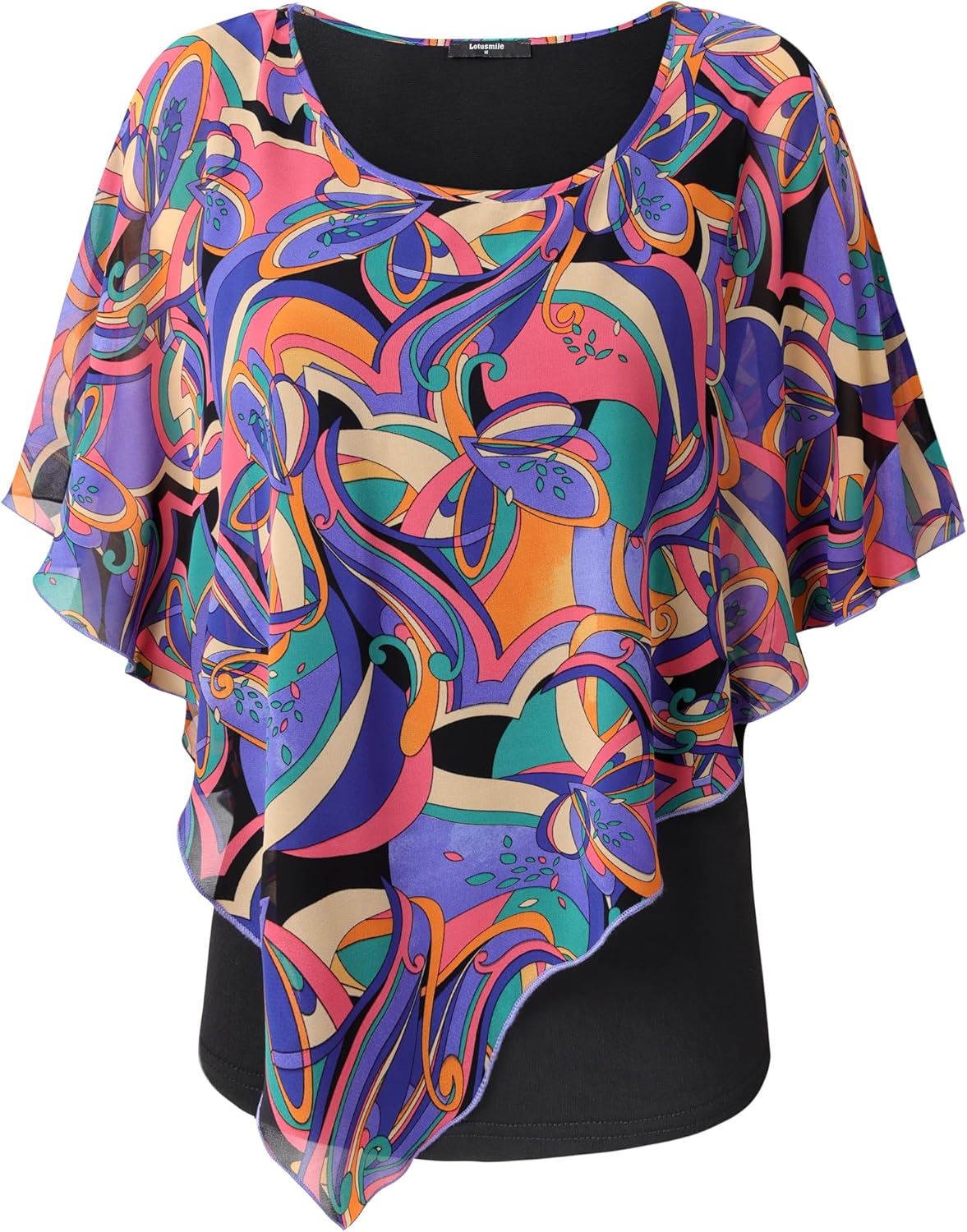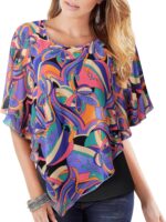 Tags: Blouse, Chiffon, DoubleLayered, Flowy, Lightweight, Lotusmile, Poncho, Printed, Shirt, Top, Womens