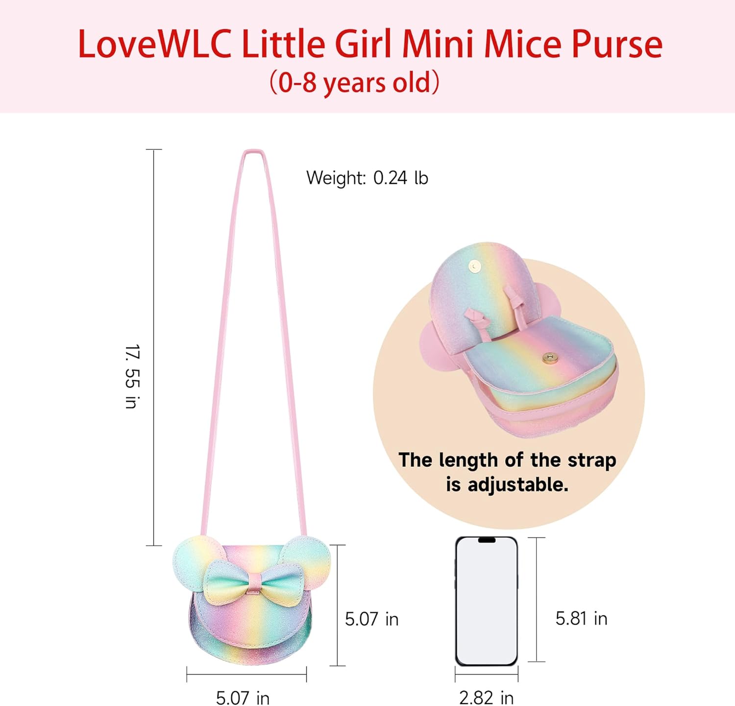 LoveWLC Cartoon Little Mouse Ear Bow Kids Crossbody Purse,Adorable Mouse Purse