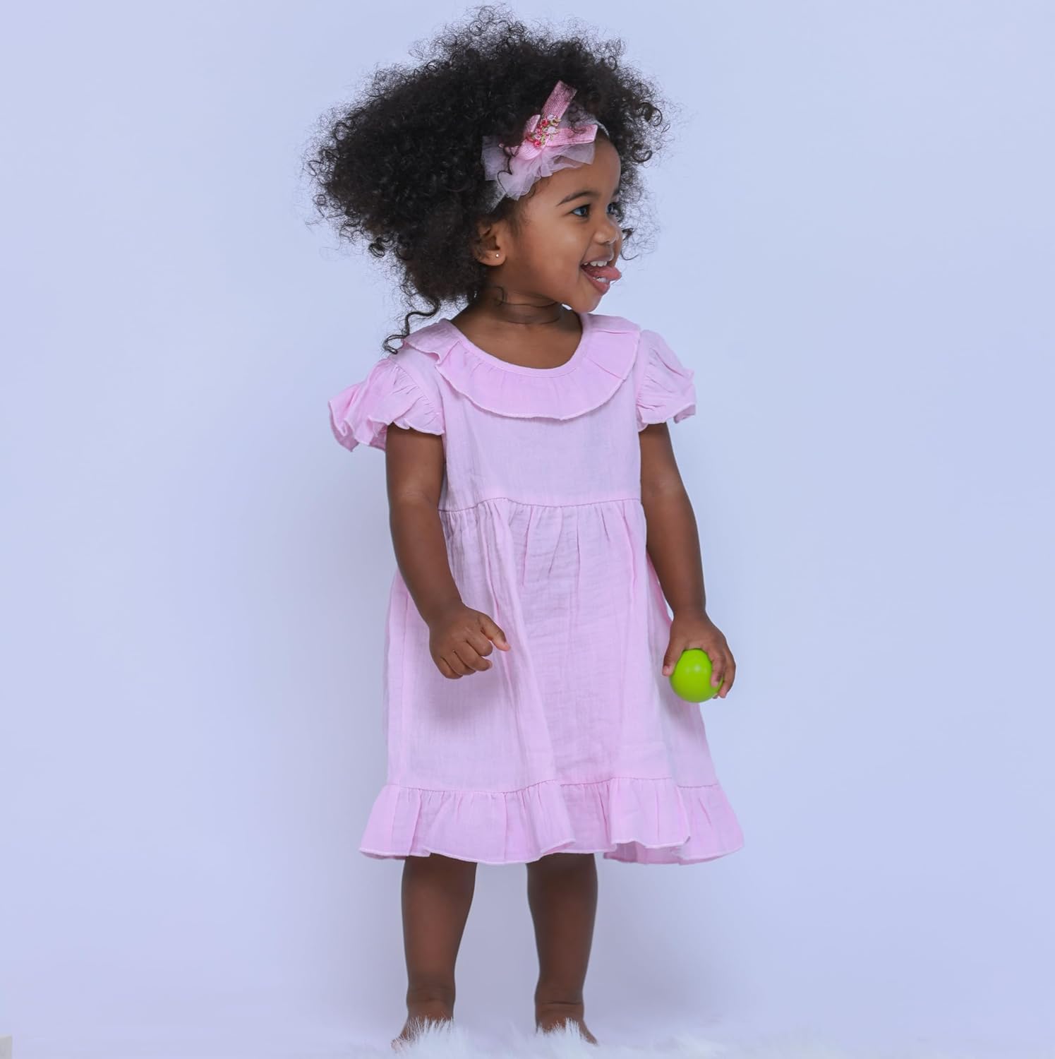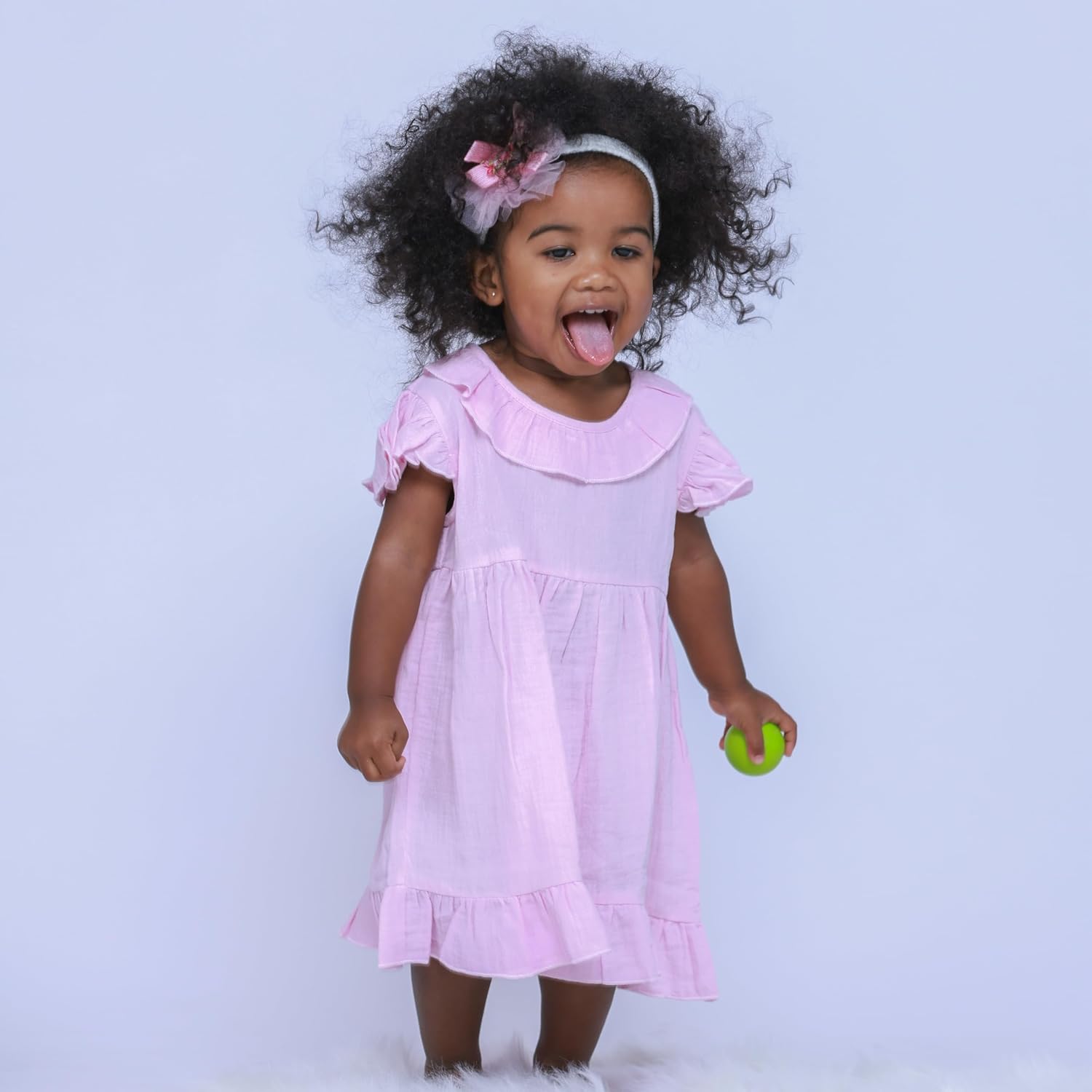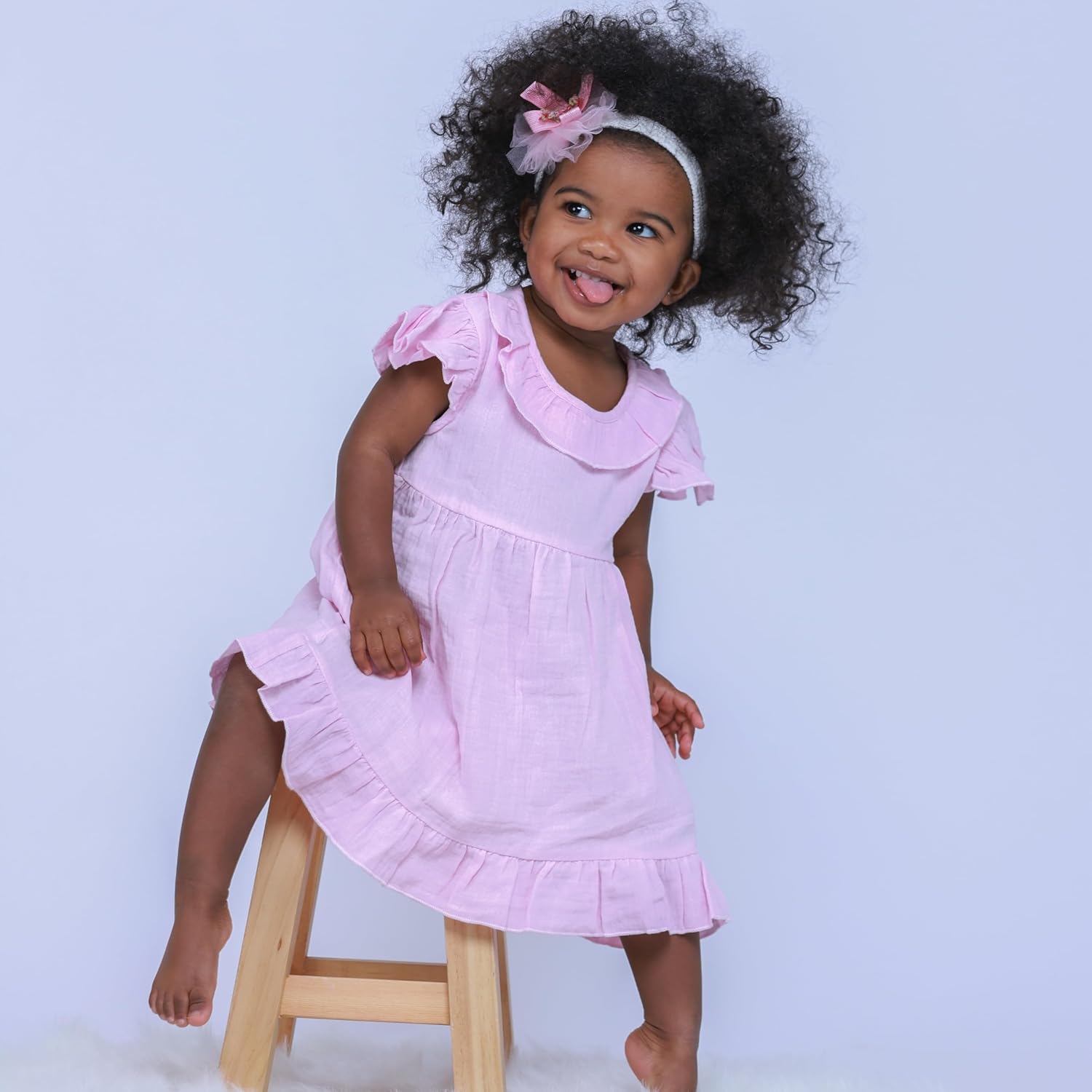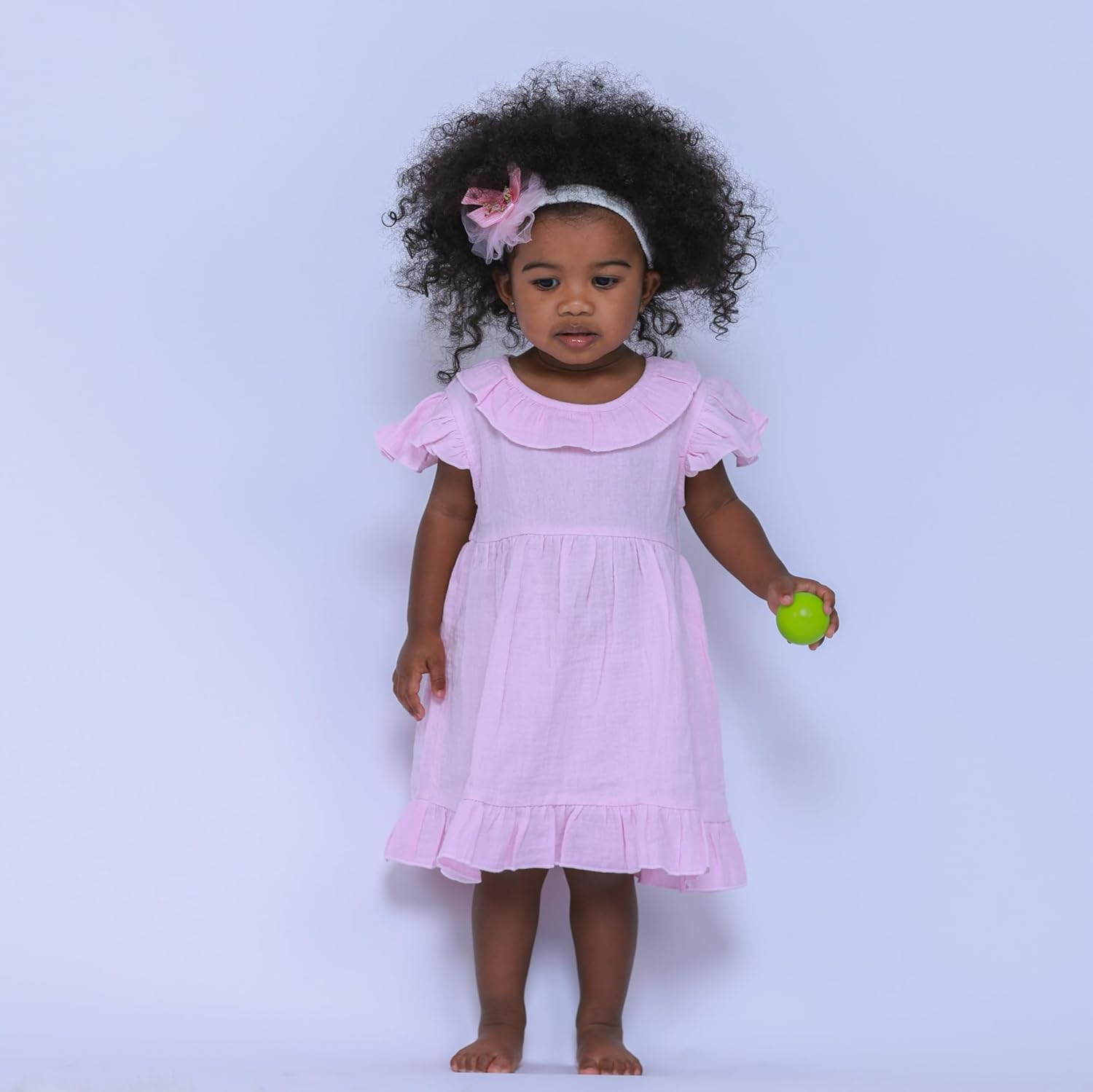 LUAY Baby Girl Frock – Summer Dress for Girls 0-3 Years Sizes | Linen Birthday Dress for Infant & Toddler | Lightweight, Soft, Baby Girl Clothes