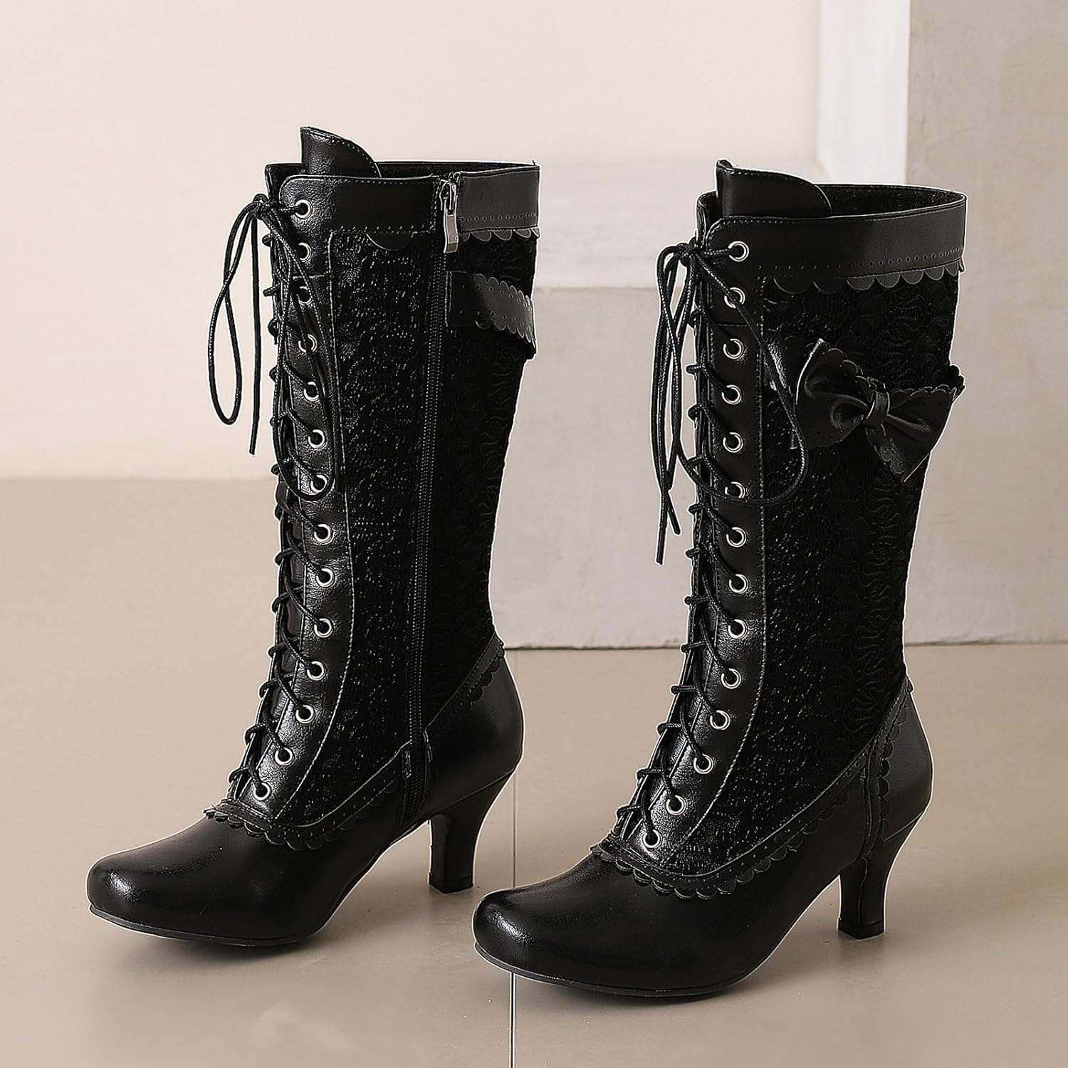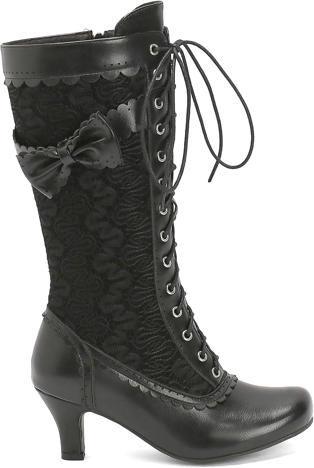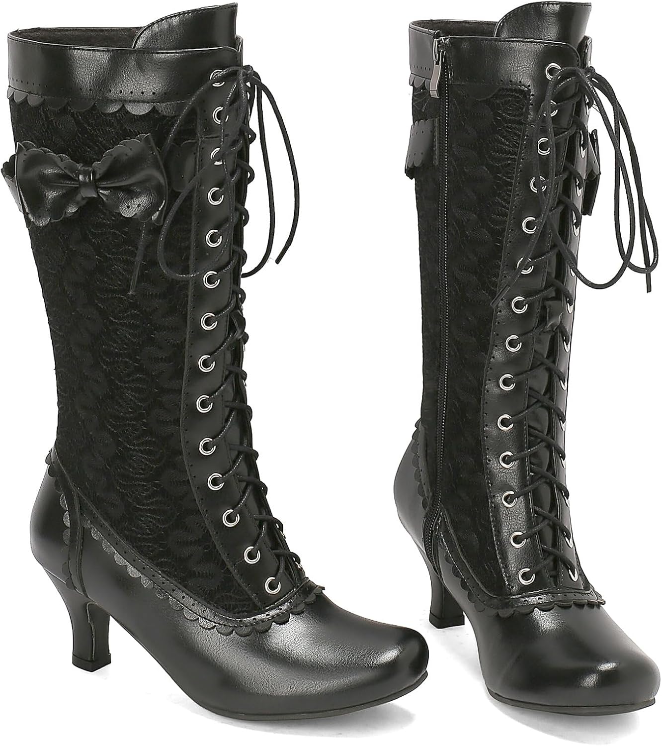 Toe Style:Square Toe LUXMAX Women Gothic Victorian Boots Low Kitten Heel Mid Calf Boots Lace Up Cute Bow Boots for Ladies Witch Shoes