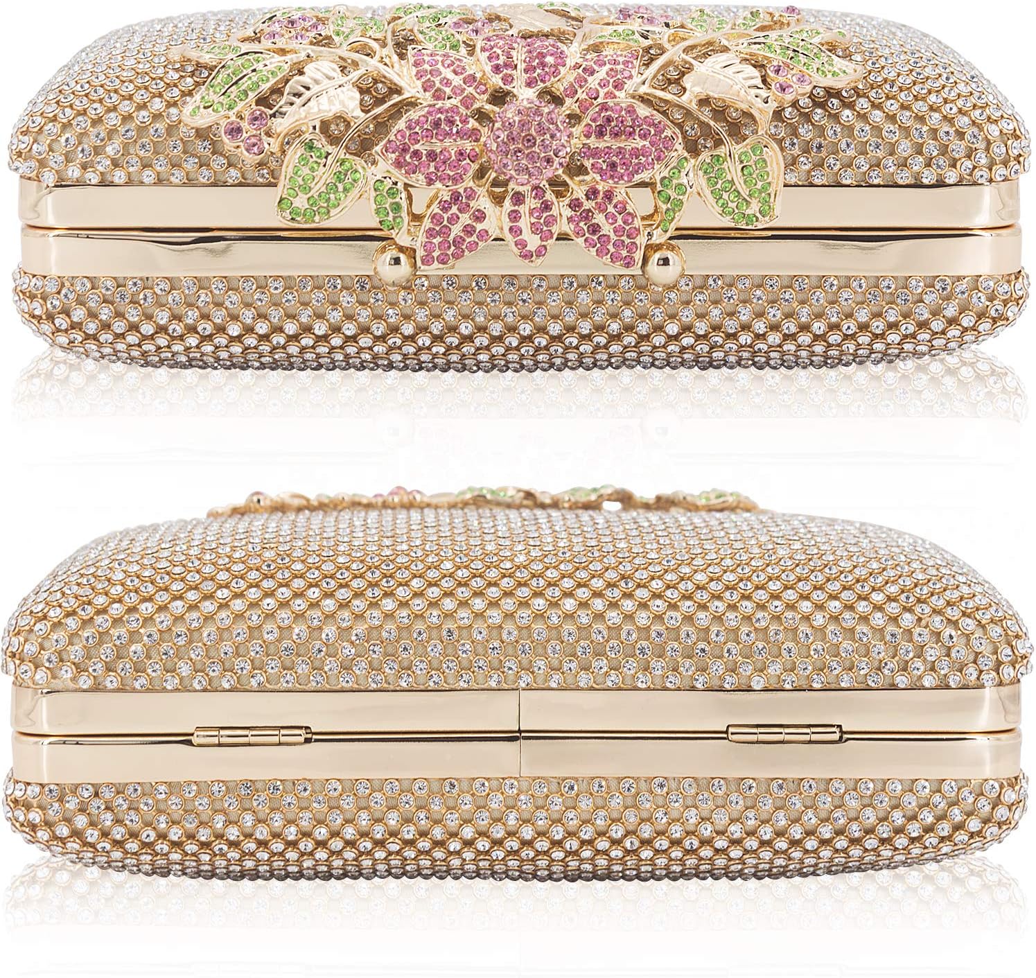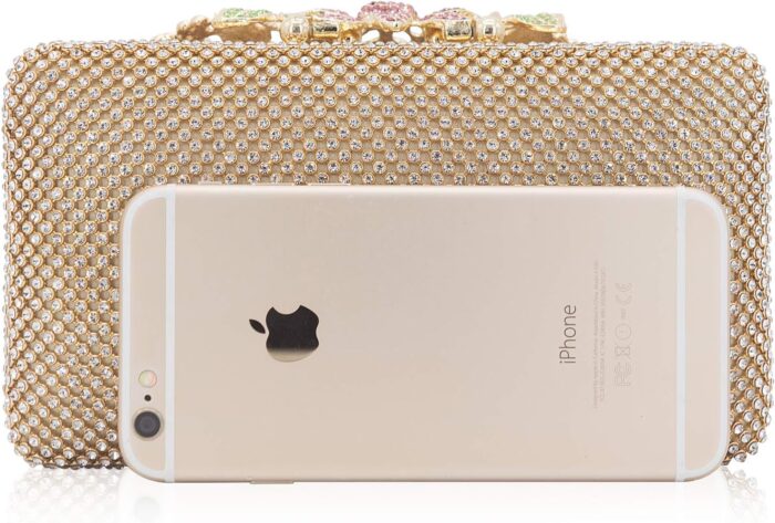 We believe It is a woman’s nature to love beauty, so you deserve to have the chic women clutch! It is a very female design covered with thousands of rhinestones. Crystals ornament, add more sparkle to your dress and shoes. Classic rectangle boxed shape with nice flower clasp, it can fit iphone8 Plus (without case), exquisite size which can be safely hold in hand.