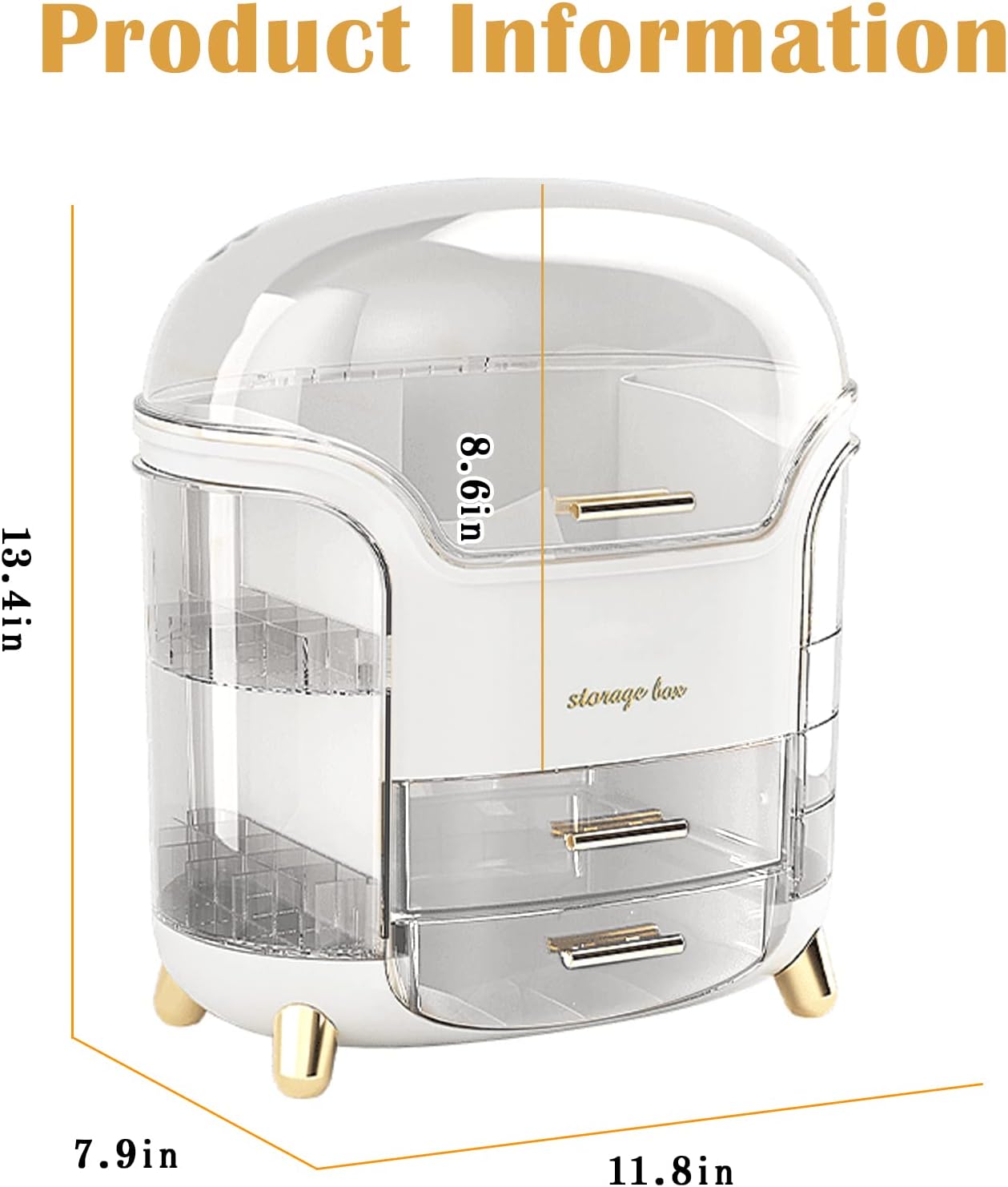 【Super Storage Capacity】 There are 9 storage areas, including 2 drawers, 2 layers of lipstick storage compartments, 4 rotatable storage Spaces and a large makeup box to meet your needs of storing different sizes of goods. The tall big top can easily store large bottles(8.7 in). You can store all your daily skin care products and cosmetics without any problem.