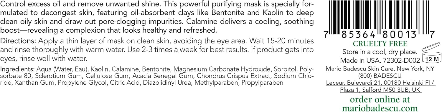 Mario Badescu Special Mask for Oily and Sensitive Skin | Purifying Clay Mask that Absorbs Excess Oil |Formulated with Natural Clay Minerals| 2 OZ