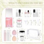 Maxdot 20 Pack Travel Makeup Containers Set Mini Makeup Brush Empty Bottles Kit with Finger Puff Spatulas Leak Proof Refillable Cosmetic Accessories for Liquid Toiletries Skincare Shampoo Mascara