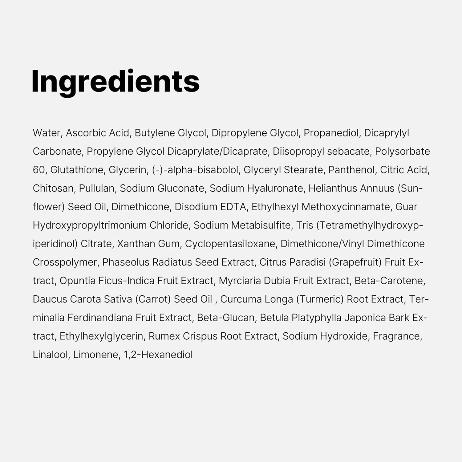 The serum contains 14.5% vitamin C that helps to inhibit melanin production, reduce hyperpigmentation, and even out skin tone. Alpha-bisabolol is known for its enhancing radiance as well as soothing and calming properties, making it a perfect ingredient for sensitive skin types.