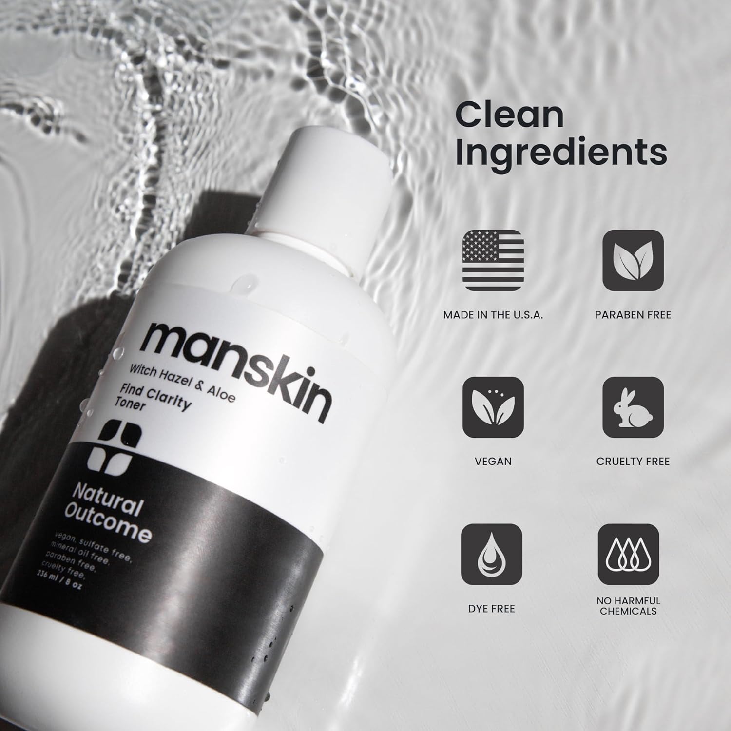 FIND CLARITY! Daily astringent tonic use helps to realize cleaner fresh looking skin. After Natural Outcome Man Skin facial cleanser apply this Alcohol Free lotion with a cotton pad to nourish and clean. A combination of purifying herbal remedies gardenia, sage, yarrow and mint reduce skin redness, acne eliminator, and hydrating to help in skin balancing.