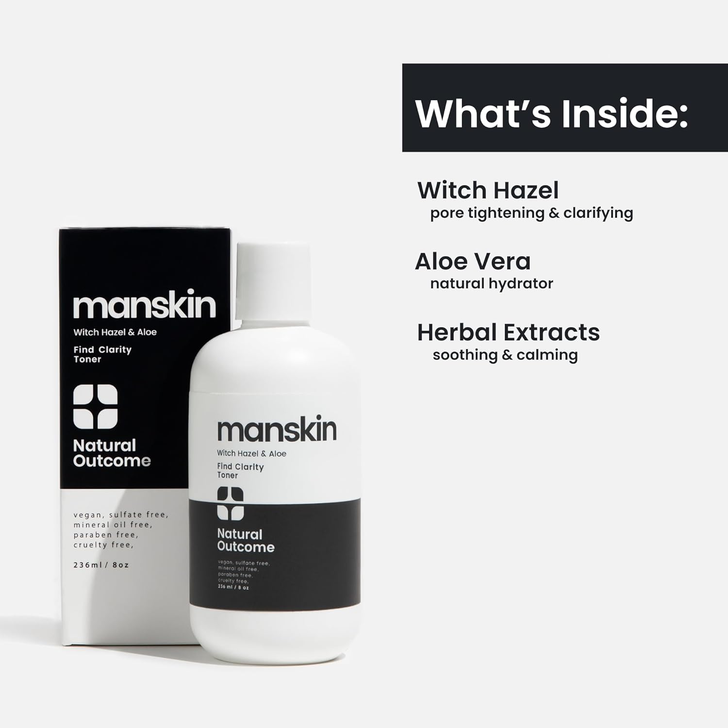Mens Face Toner by Natural Outcome Skincare, Alcohol Free Pore Cleansing Facial Astringent with Witch Hazel & Aloe Vera for All Skin Types