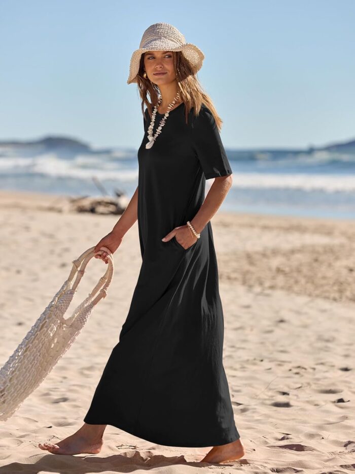Elevate your style with our Effortless Style and Comfort Women’s Maxi Dress. Designed to offer both comfort and versatility, this dress is perfect for any occasion. The half sleeve design strikes the ideal balance between coverage and breathability, ensuring you stay comfortable throughout the day. Its basic and timeless style makes it a wardrobe staple, ready to be dressed up or down to suit your mood and the occasion. The round neckline adds a touch of sophistication, while the side pockets provide convenience and functionality, allowing you to carry essentials without sacrificing style. The solid color and shapeless silhouette create a versatile canvas for accessorizing and effortless pairing with different shoes and accessories. Crafted with attention to detail, this maxi dress features an ankle-length hemline, adding an elegant and graceful touch to your ensemble. Whether you’re attending a casual outing or a special event, our Effortless Style and Comfort Women’s Maxi Dress is the perfect choice for showcasing your personal style. Experience the ultimate blend of comfort, style, and versatility with this must-have dress. Get yours today and make a fashion statement wherever you go!