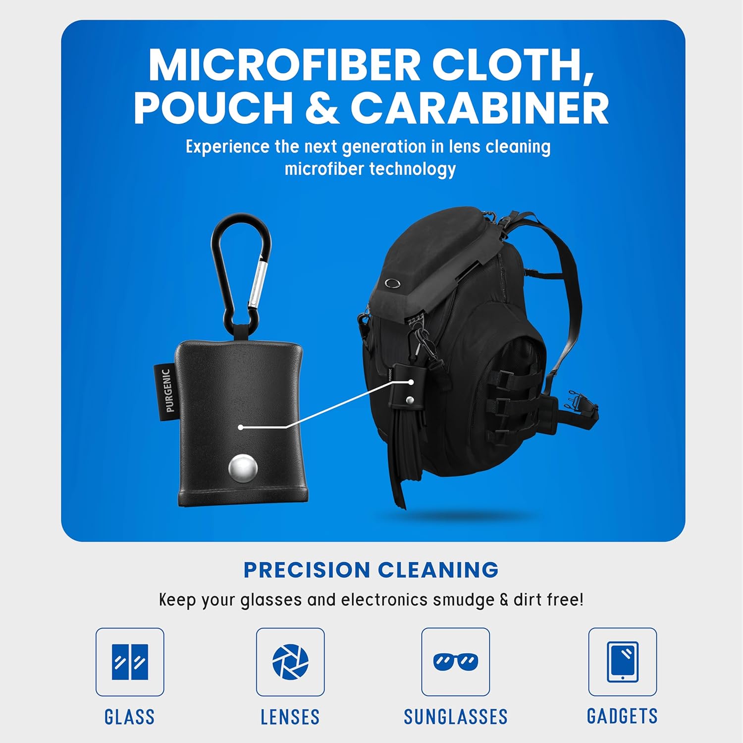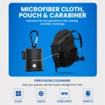 ✅ ANTI-STATIC CLIP-ON CLEANER ►Carry the glass wipes for eyeglasses cloth anywhere without getting lost or misplaced. A sturdy carabiner is included with the pouch to allow you to clip it onto your travel bags. Attach the pouch to your camera bag, binocular harness, jackets and backpacks. The cloth’s anti-static property makes it perfect for sensitive optics.