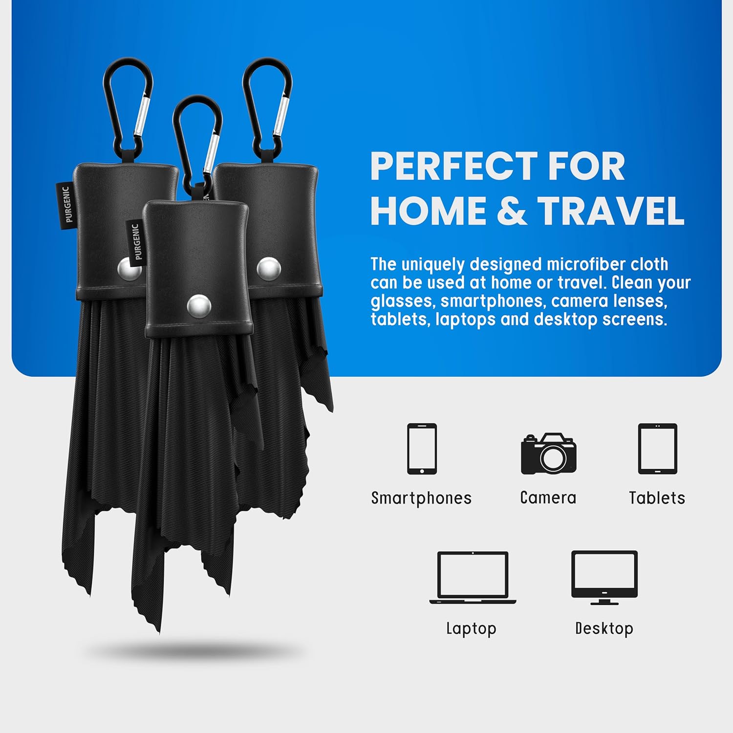 Microfiber Cloth & Glasses Wipes (3 Pack) Lens & Glasses Cleaning Cloth – Eye Glass Clean Cloths – Eyeglass Cleaning Cloth – Glass Cleaning Cloth – Camera Lenses & Gadget Delicate Screens – Black