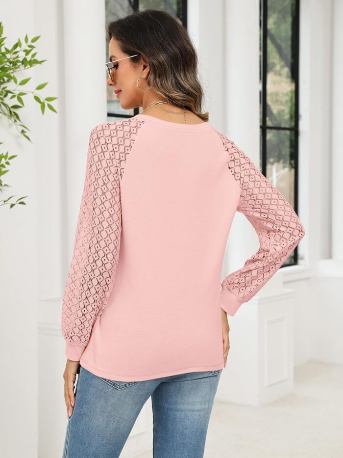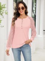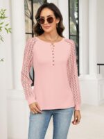 【SPECIAL FEATURES】Lace Sleeve Tops, Henley Tops, Button Down Shirts, Long Sleeve Shirts, Women’s blouse, Casual, Cute and Classic. Long sleeve tops with lace design, provides a flattering and elegant look and shows good figure.