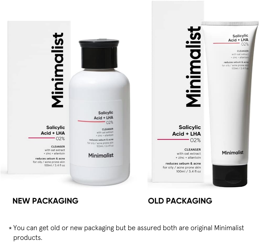 Minimalist 2% Salicylic Acid Face Wash for Oily Skin, Acne Prone Skin, Sulphate free, Anti Acne Face Cleanser With LHA & Zinc For Men & Women, 100 ml 3.4Oz (Pack of 1)