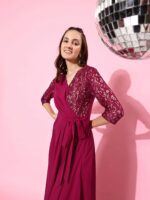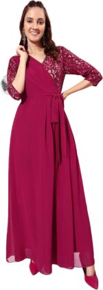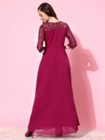 Be the first to review “Miss Olive Women’s Sweet heart neck 3/4 Sleeve Self Design Fit & Flare Maxi Dress” Cancel reply